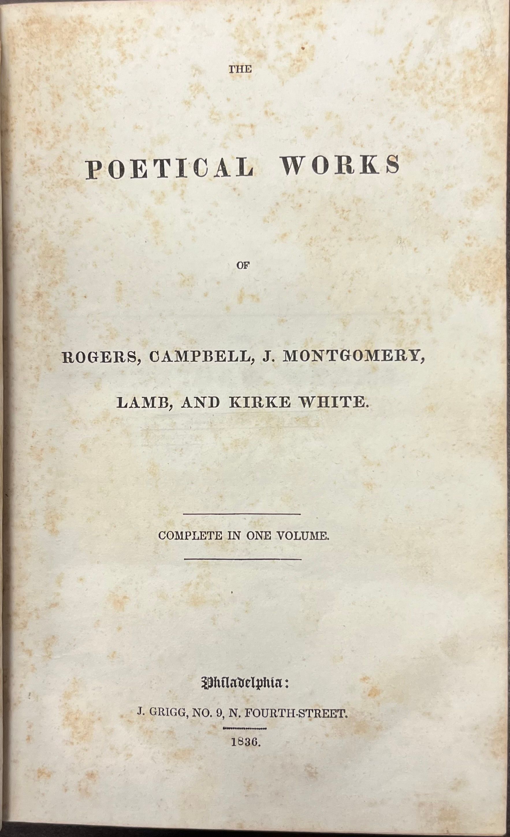 Poetical works of Rogers, Campbell, J. Montgomery, Lamb and Kirke, White, Henry. 1836