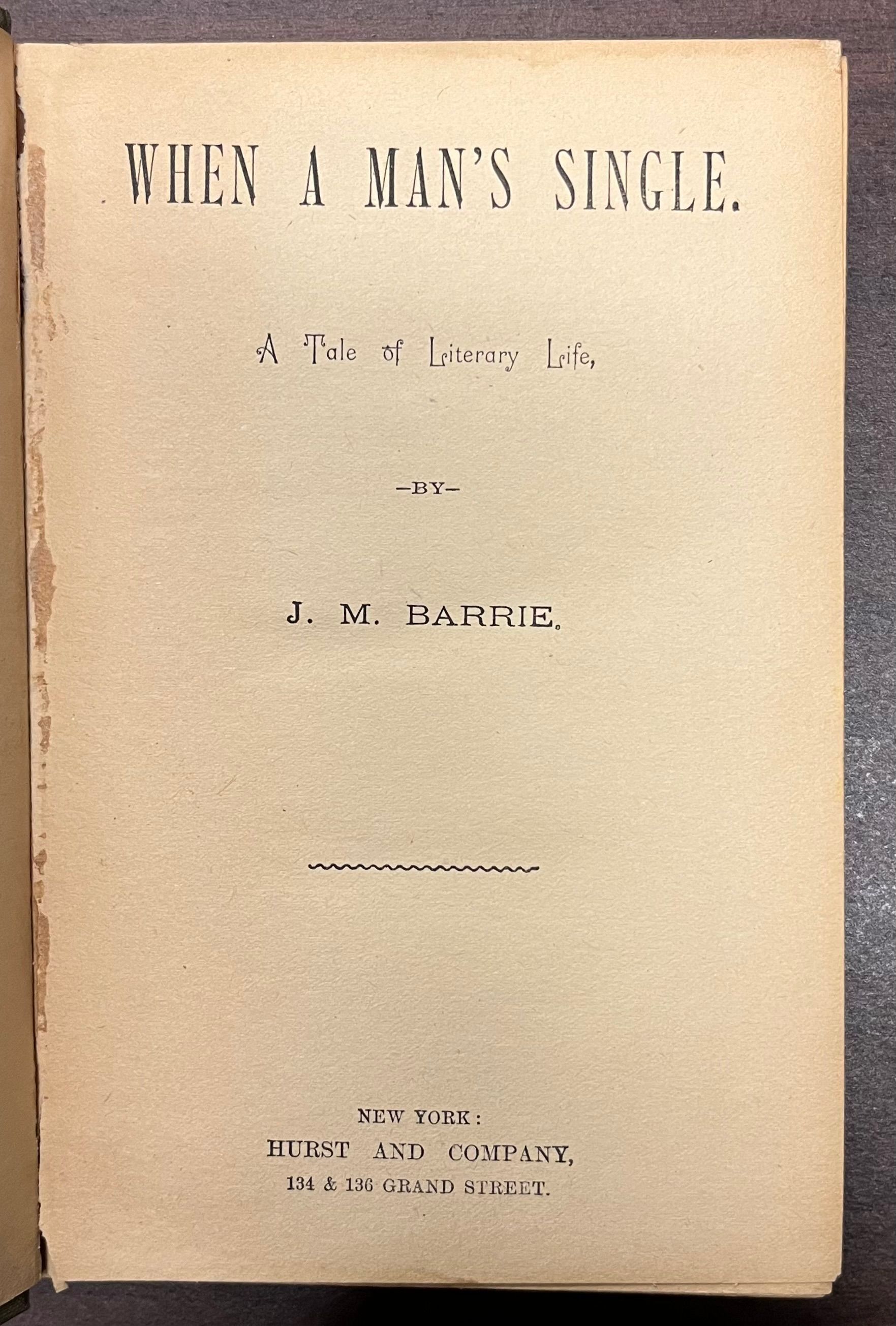 When a Man's Single: a tale of a literary life by J.M. Barrie