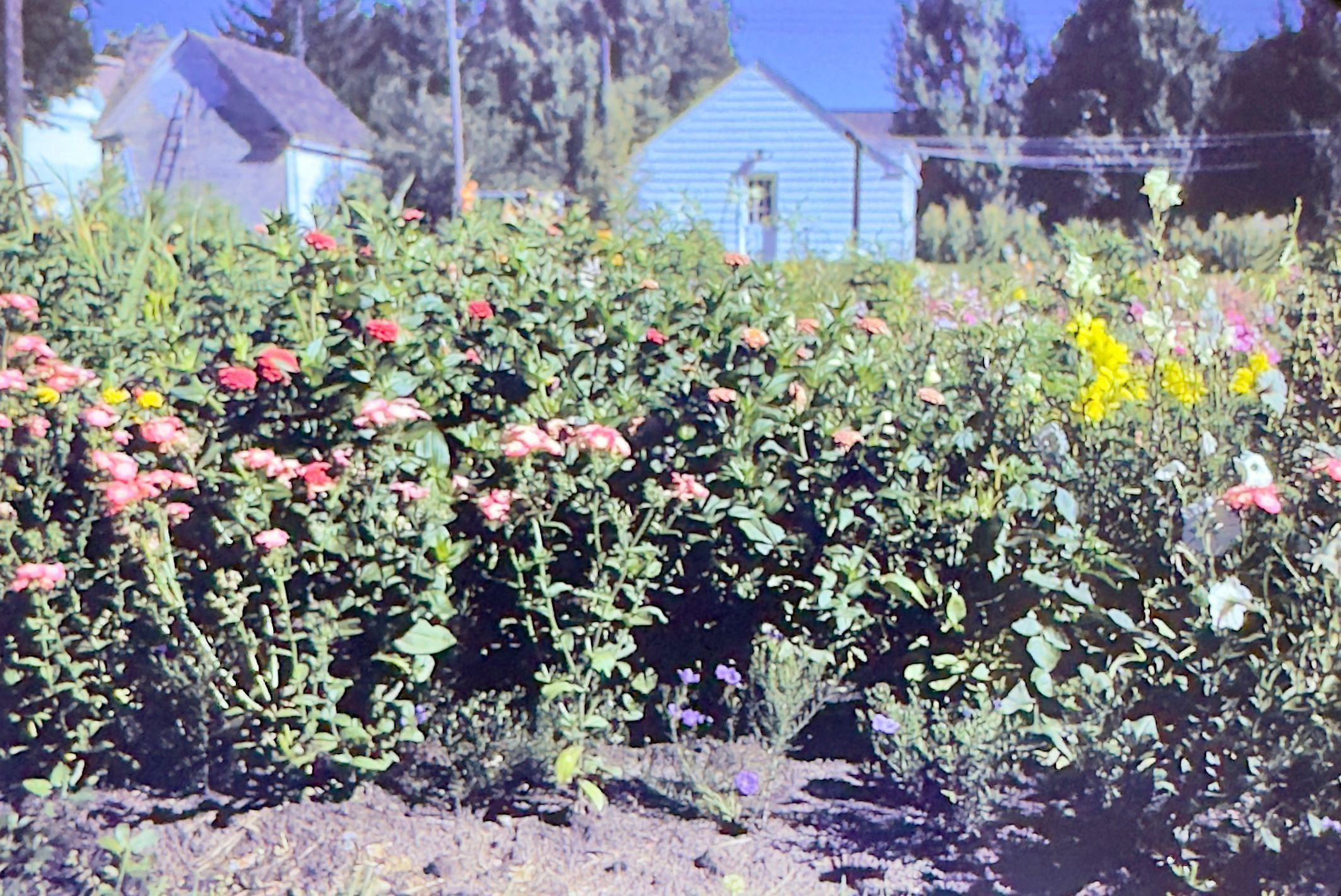 Professor Moore's garden phlox and zinnias August 14, 1943. 713 Lincoln. See link below for contextual info on Moore's garden in the RCP. Also see scanned clipping.
