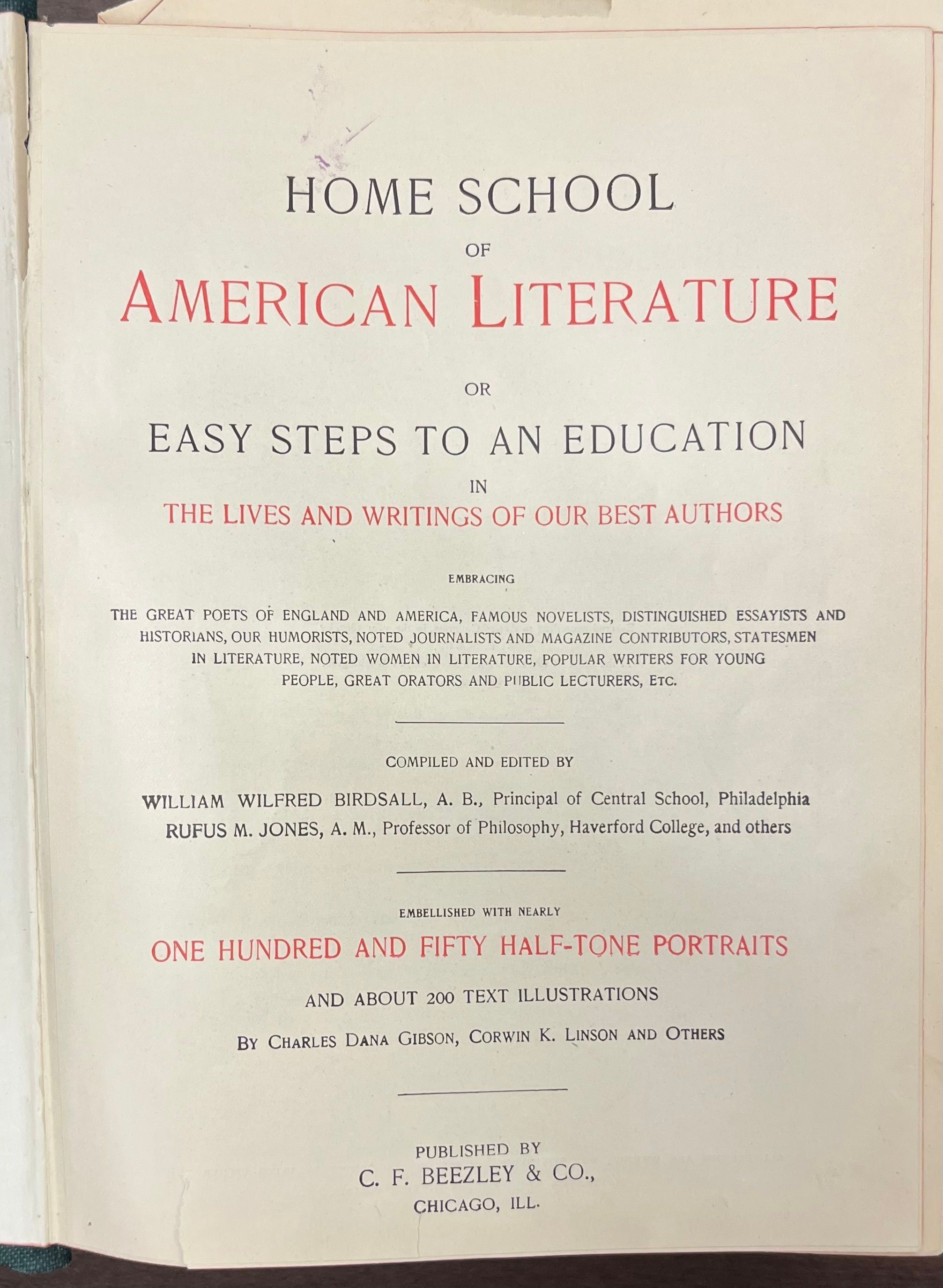 Home School of American Literature or Easy Steps to an Education in The Lives and Writings of our Best Authors...compiled and edited by William Wilfred Birdsall.