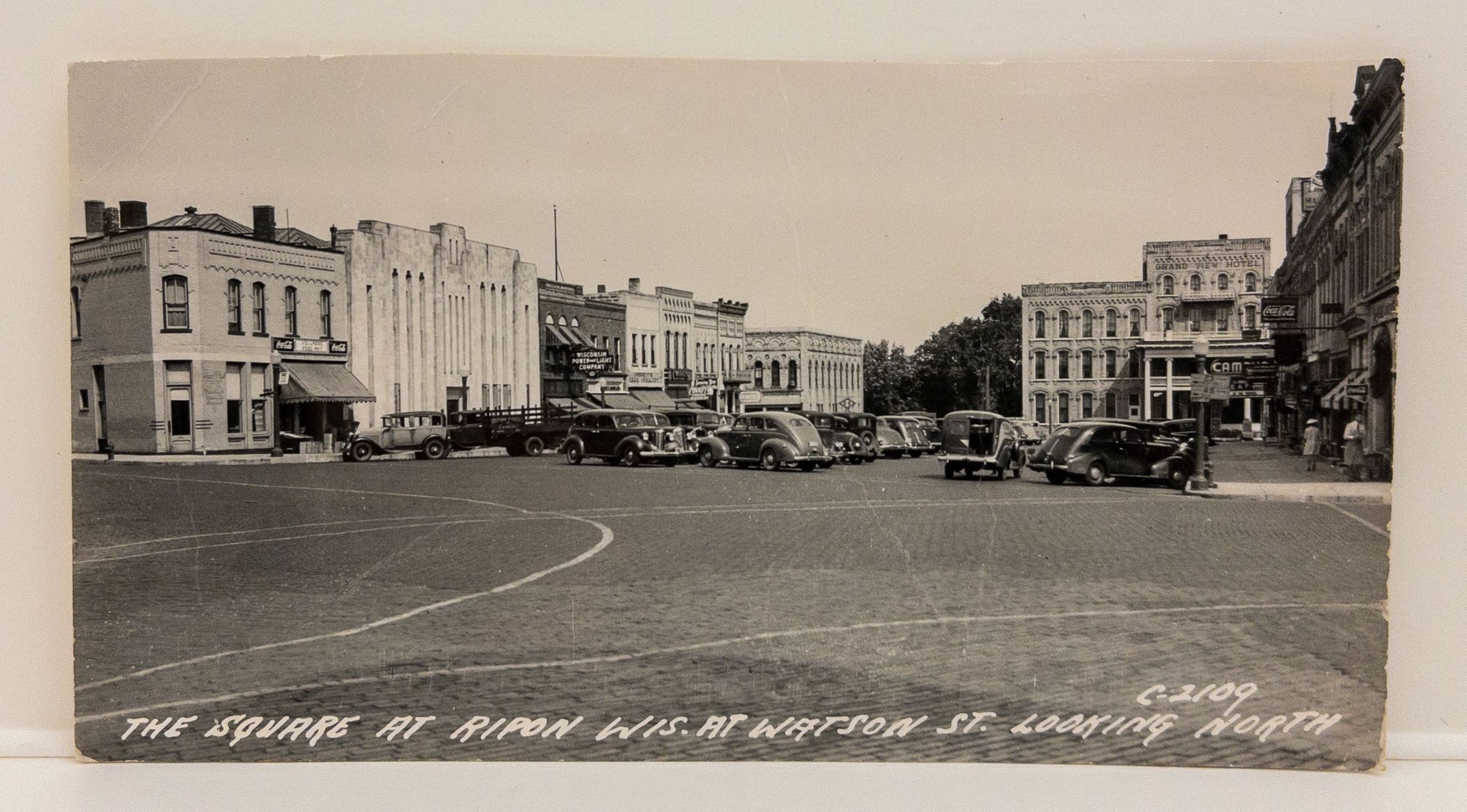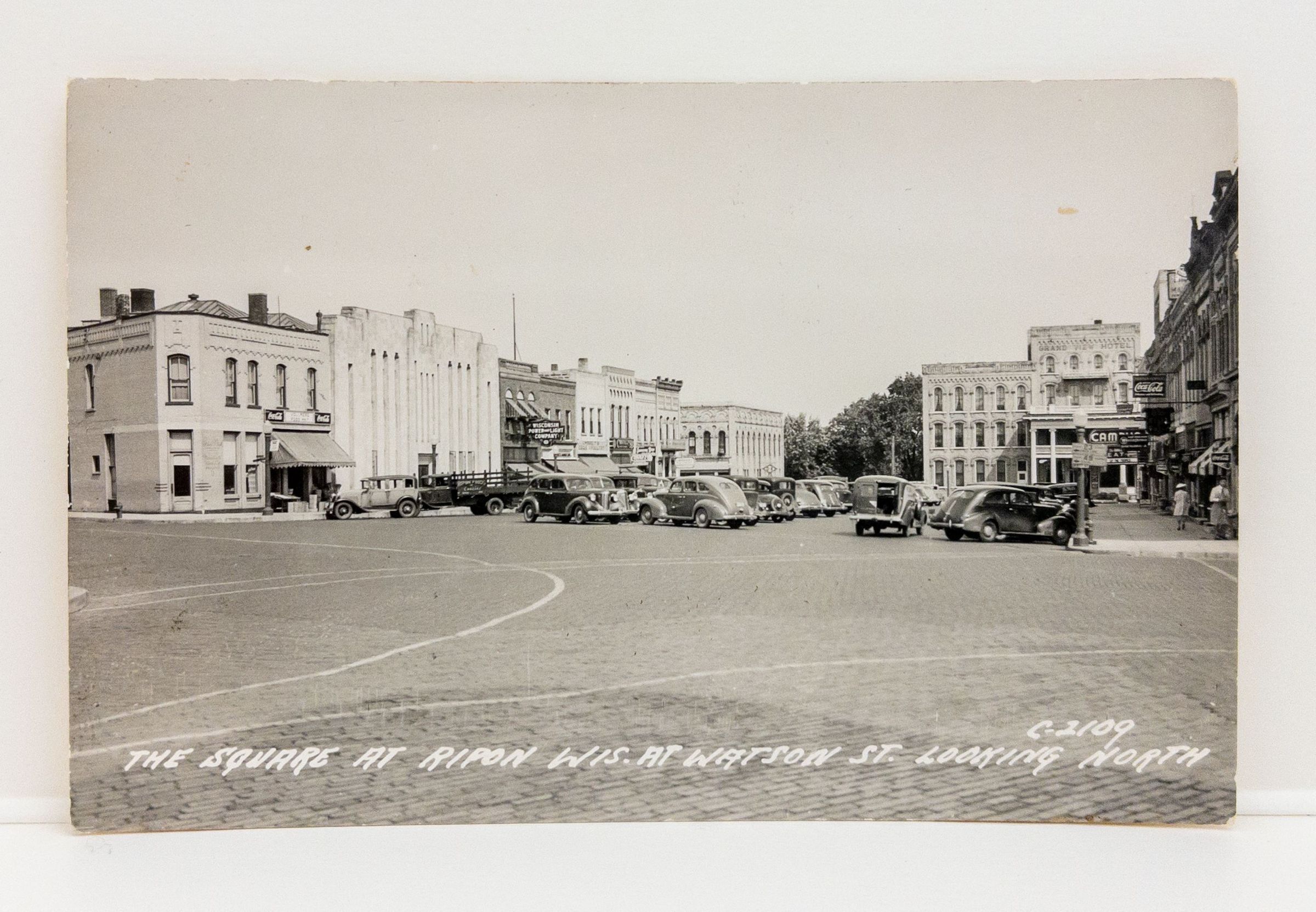Grandview, postcard, bank, brick, vollmer, grocery, business, square