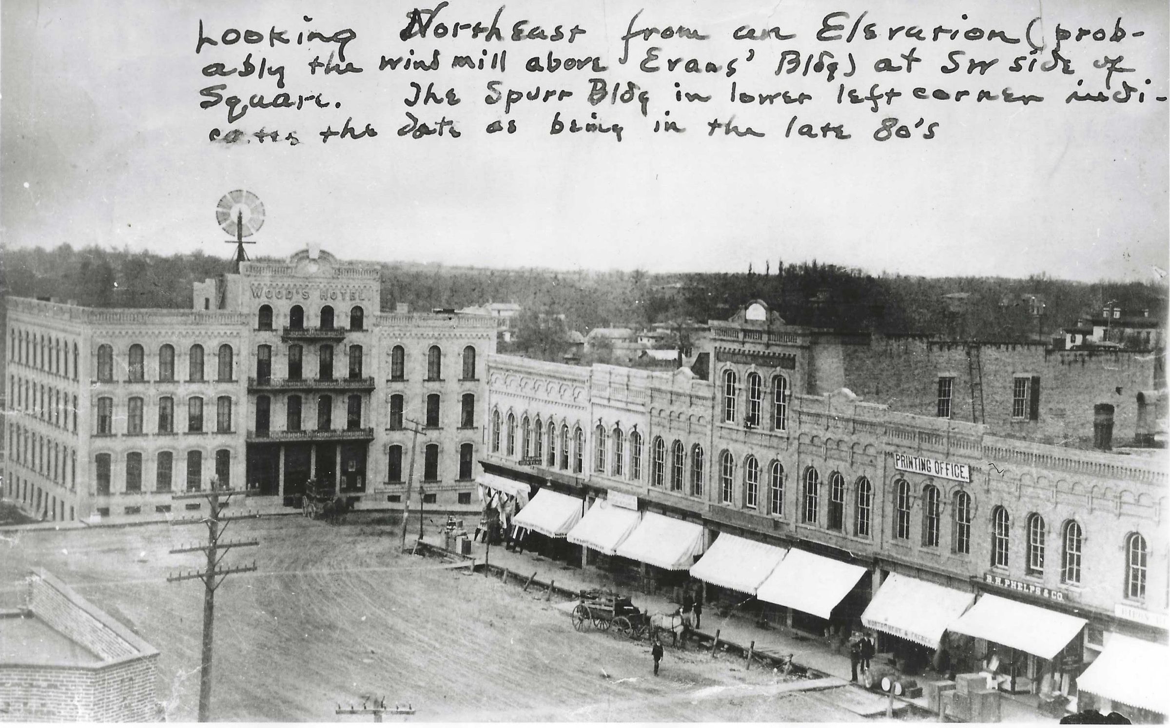 Woods, hotel, Square, Spurr, 100, block, Watson, Printing, Phelps, dentist, business