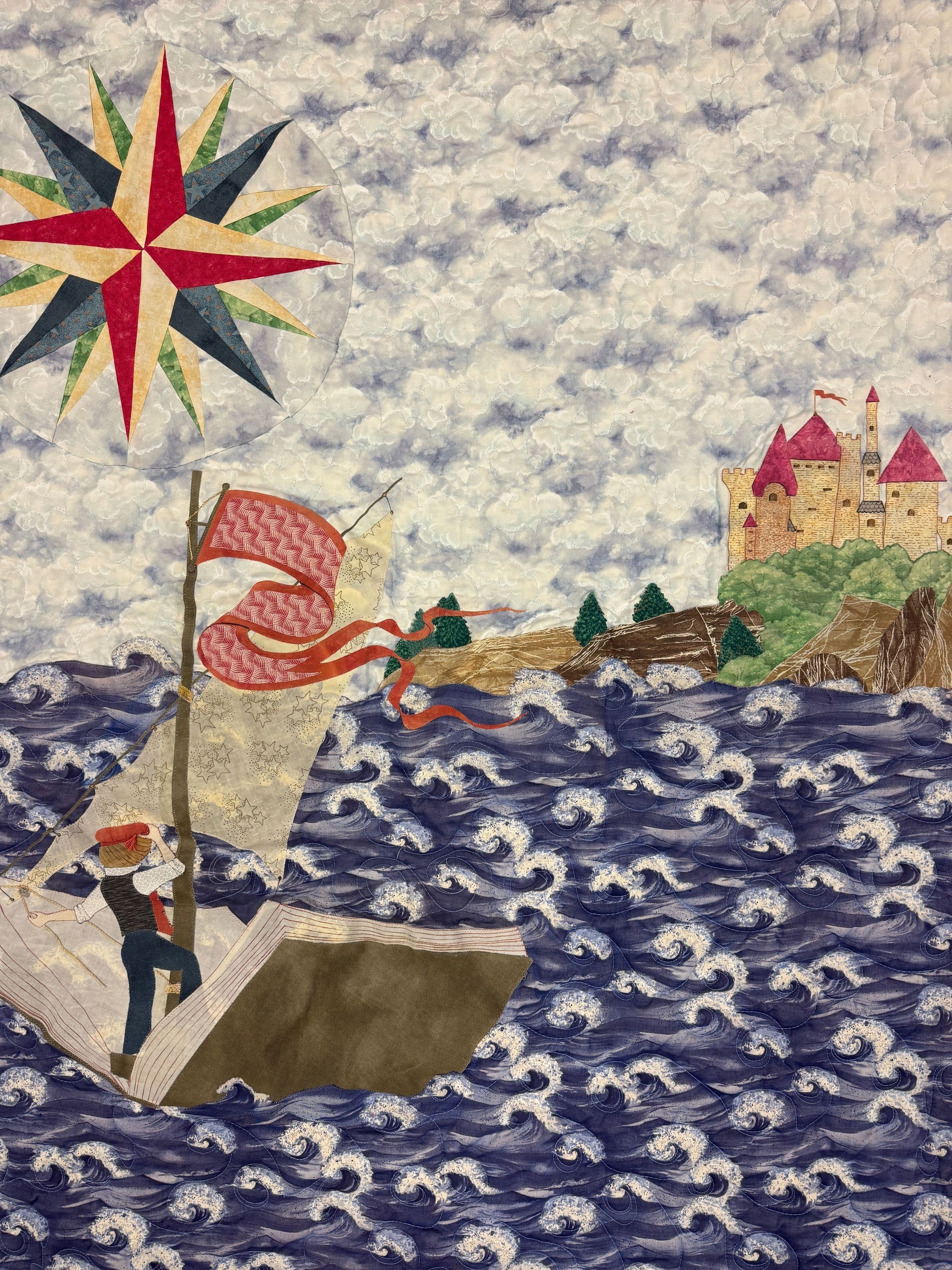 The quilt is a representation of Emily Dickinson's poem, "Theirs is no frigate like a book." Gauthier is a well known author of quilting books, a creator of quilting fabric, and owner of Bungalow Quilting at 646 W Fond du Lac St., Ripon.Acquisition
