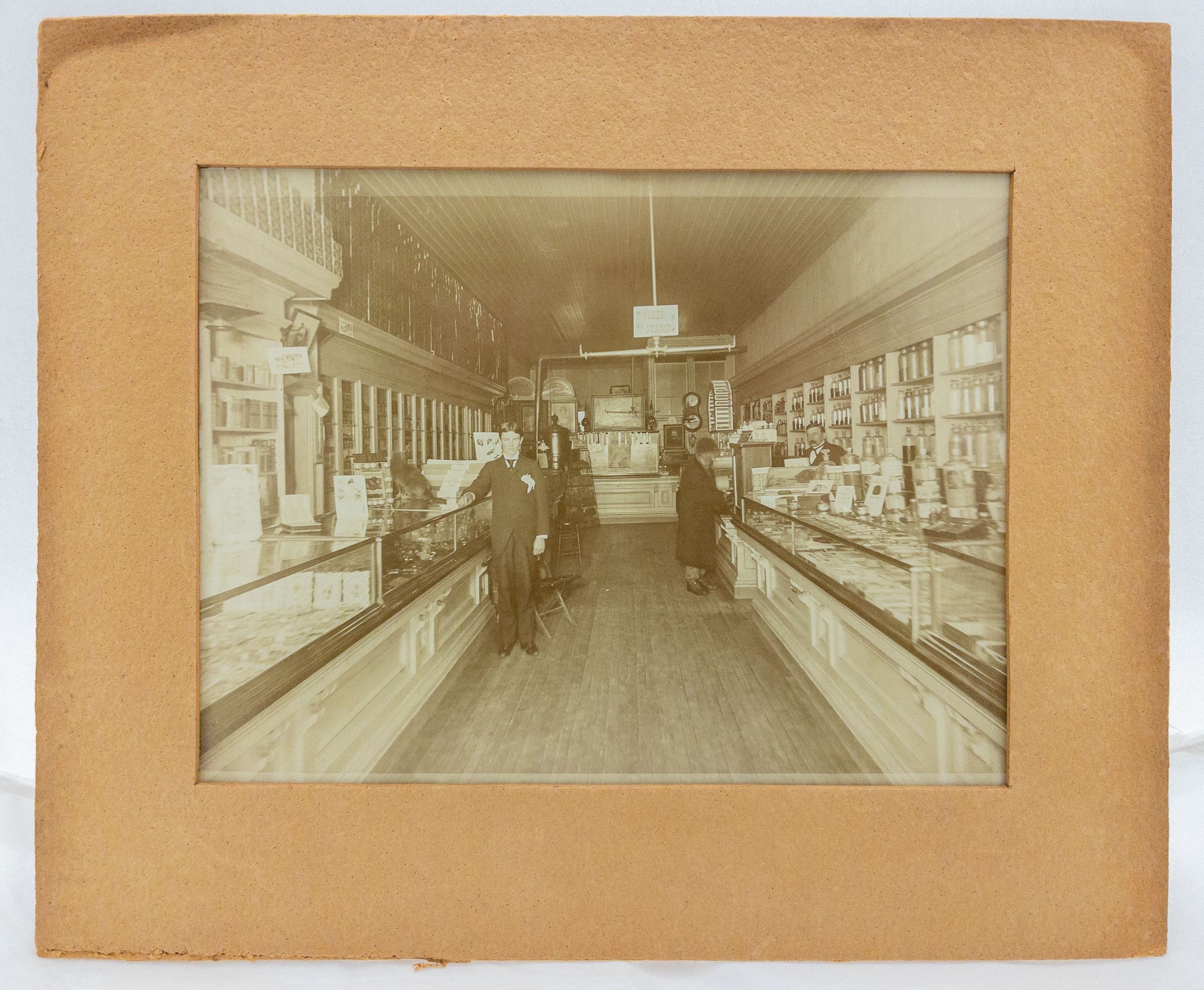 Black & white 11 x 9 photograph of drug store interior. Writing on back says Schallern Drug. Unclear whether this is Ottmar Schallern, for whom listings can be found in 1876, 1901, and 1915-16 City Directories. Addresses include 103 Main in 1901 and 121 Main in 1915-16. Maybe the City Drug seen in other photographs.