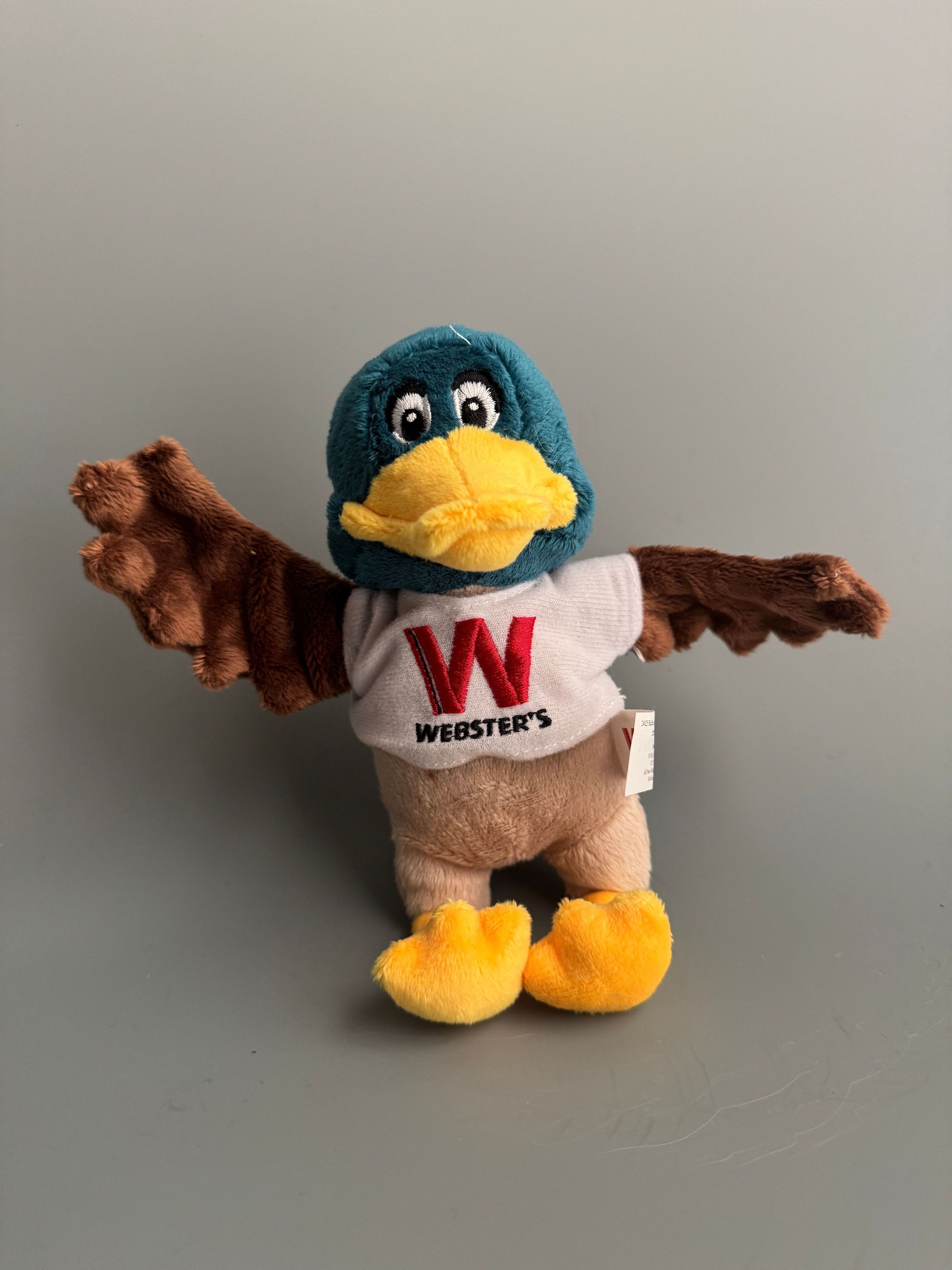 Stuffed Animal, duck. Mascot used by Webster's Marketplace, known as "Webbie."Context