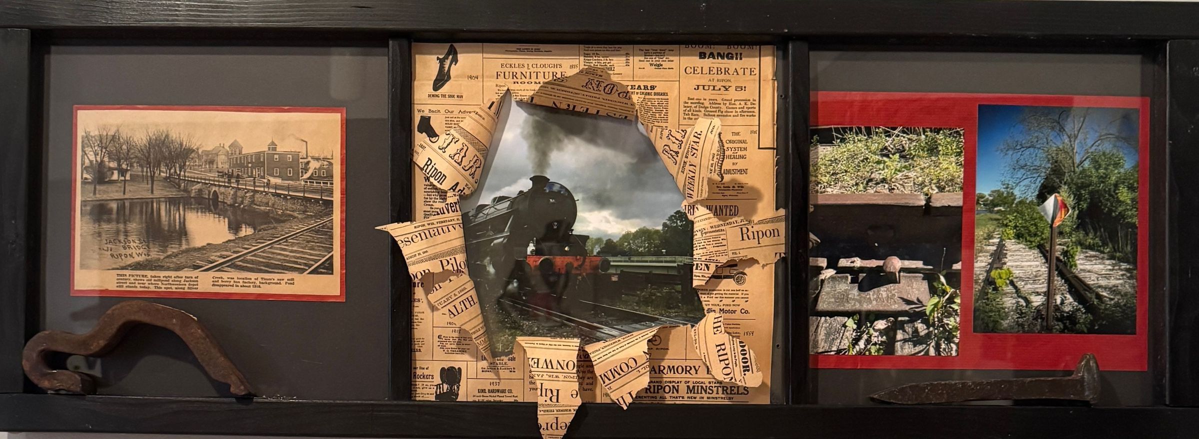 Artist Statement: This assemblage tryptic represents the evolution of passenger train travel in Ripon.