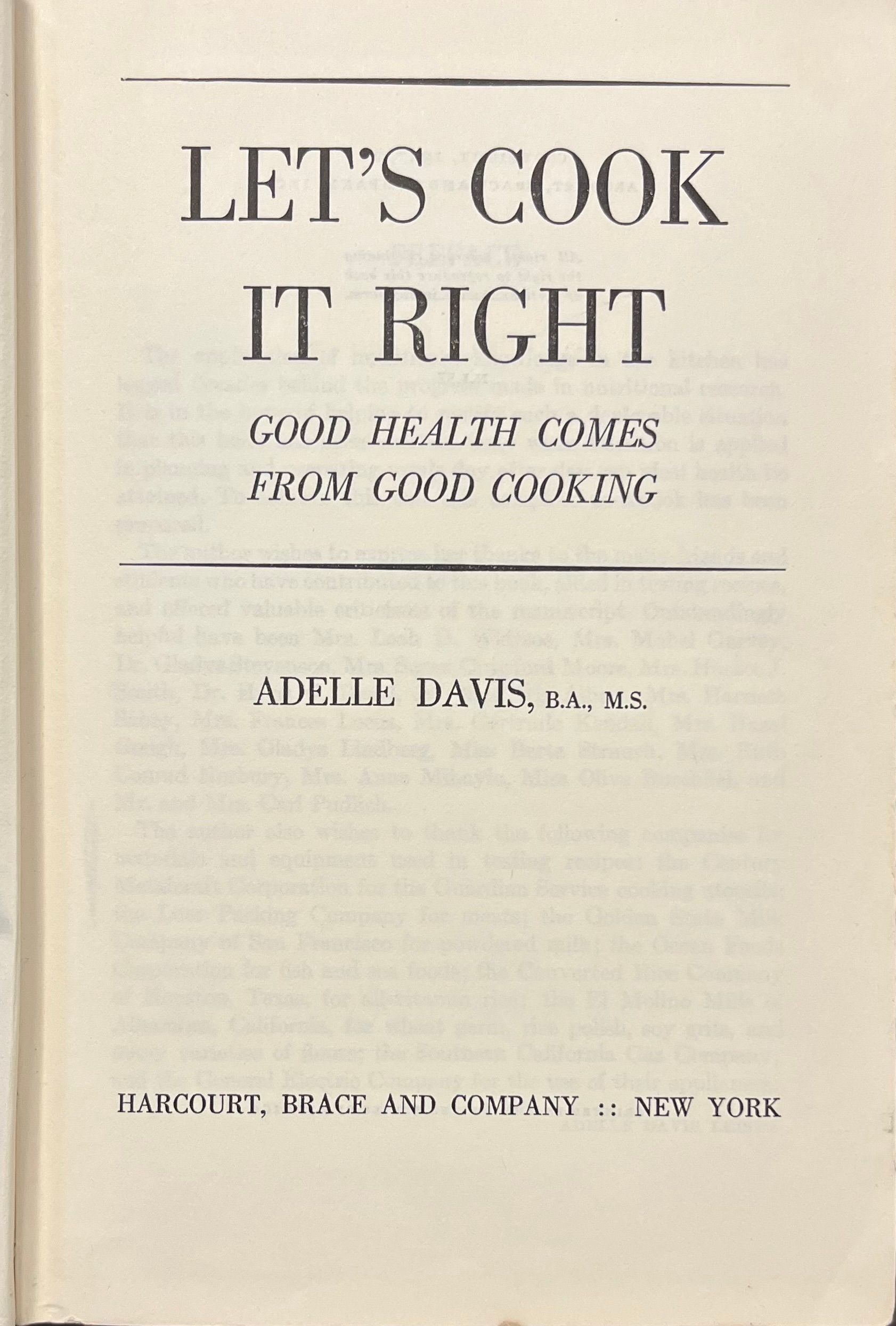 Let's Cook It Right: Good Health Comes from Good Cooking by Adelle Davis