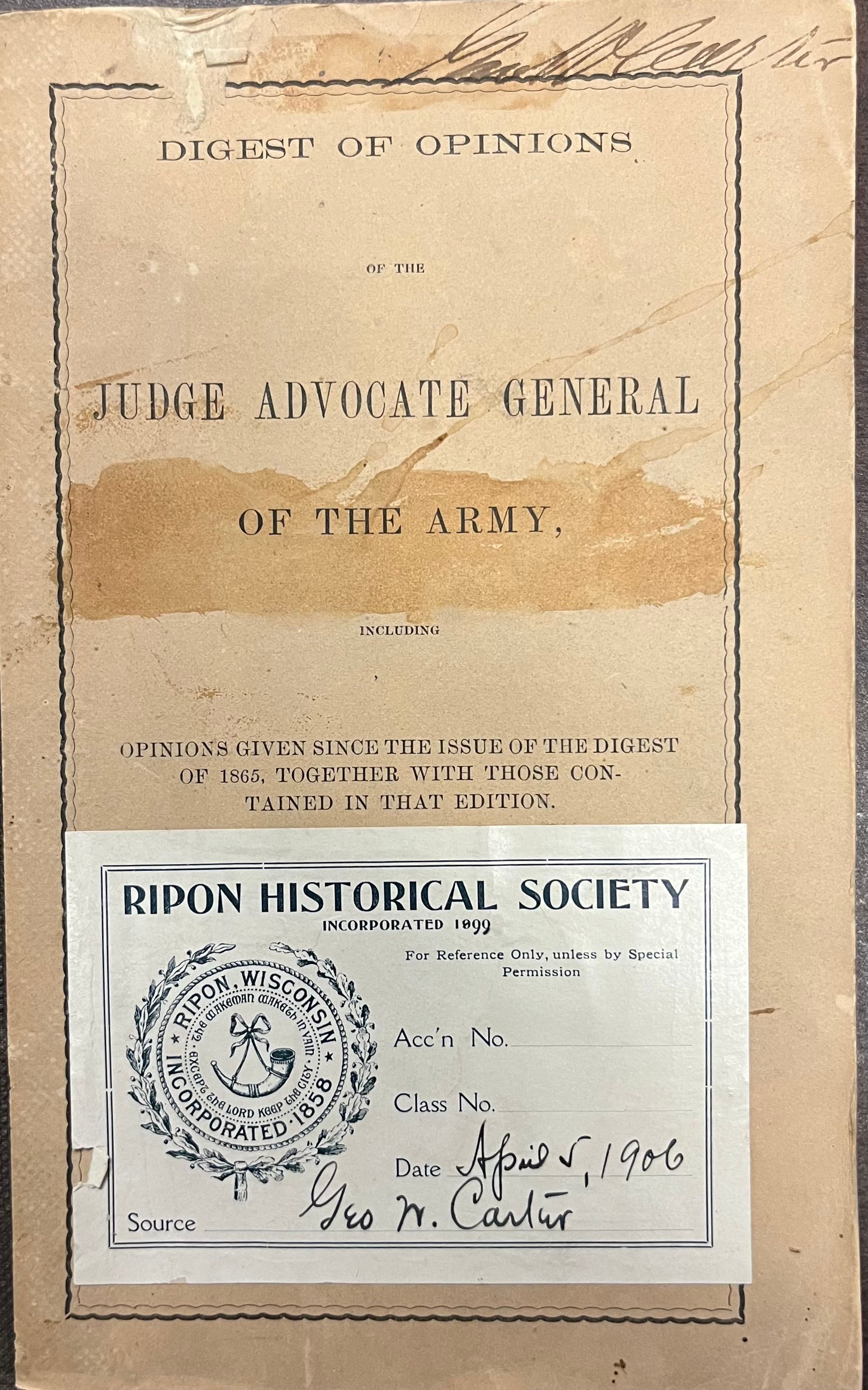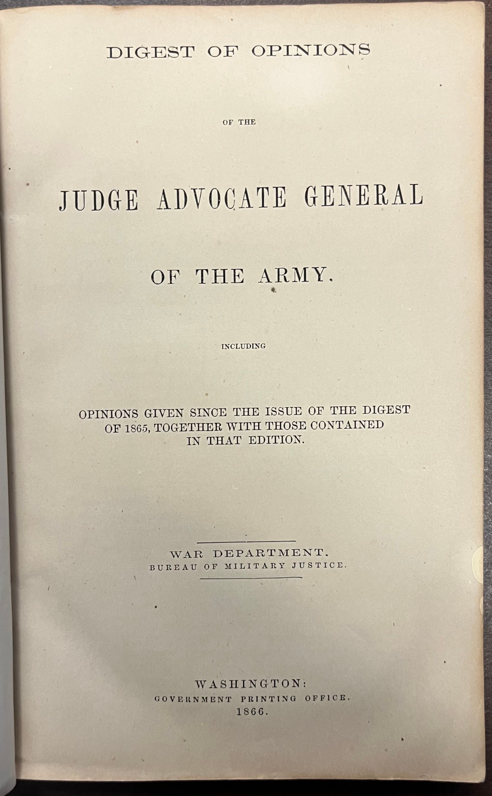 Digest of Opinions of the Judge Advocate General of the Army....1866