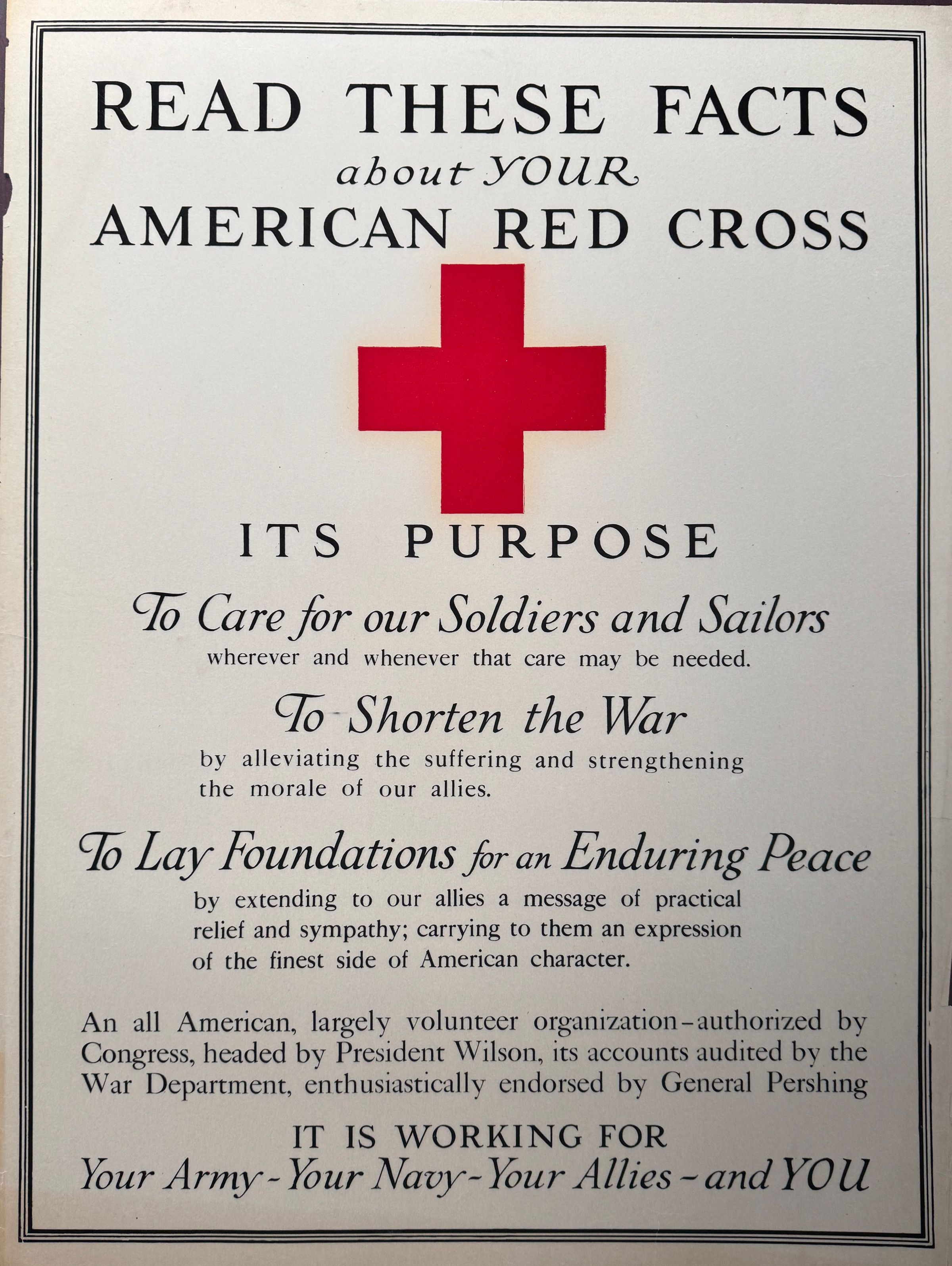 World War 1 Red Cross poster outlining the purpose of the Red Cross. 1917
