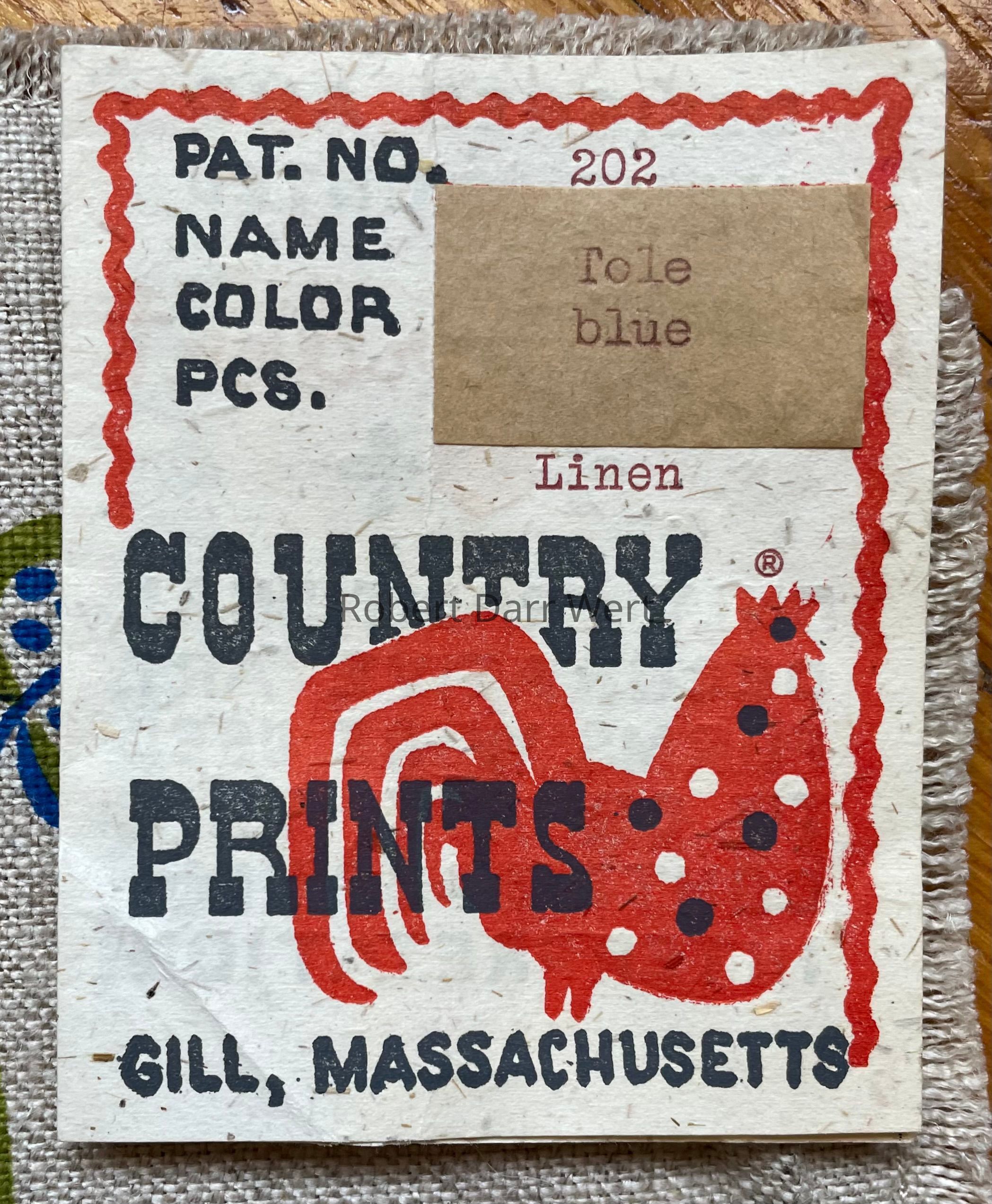 This runner is listed on the January 1960 Country Prints price list in three colorways (pink, blue, or green), and appears in the c.1960 brochure “Mat Sets by Robert Darr Wert/Country Prints”; see images.