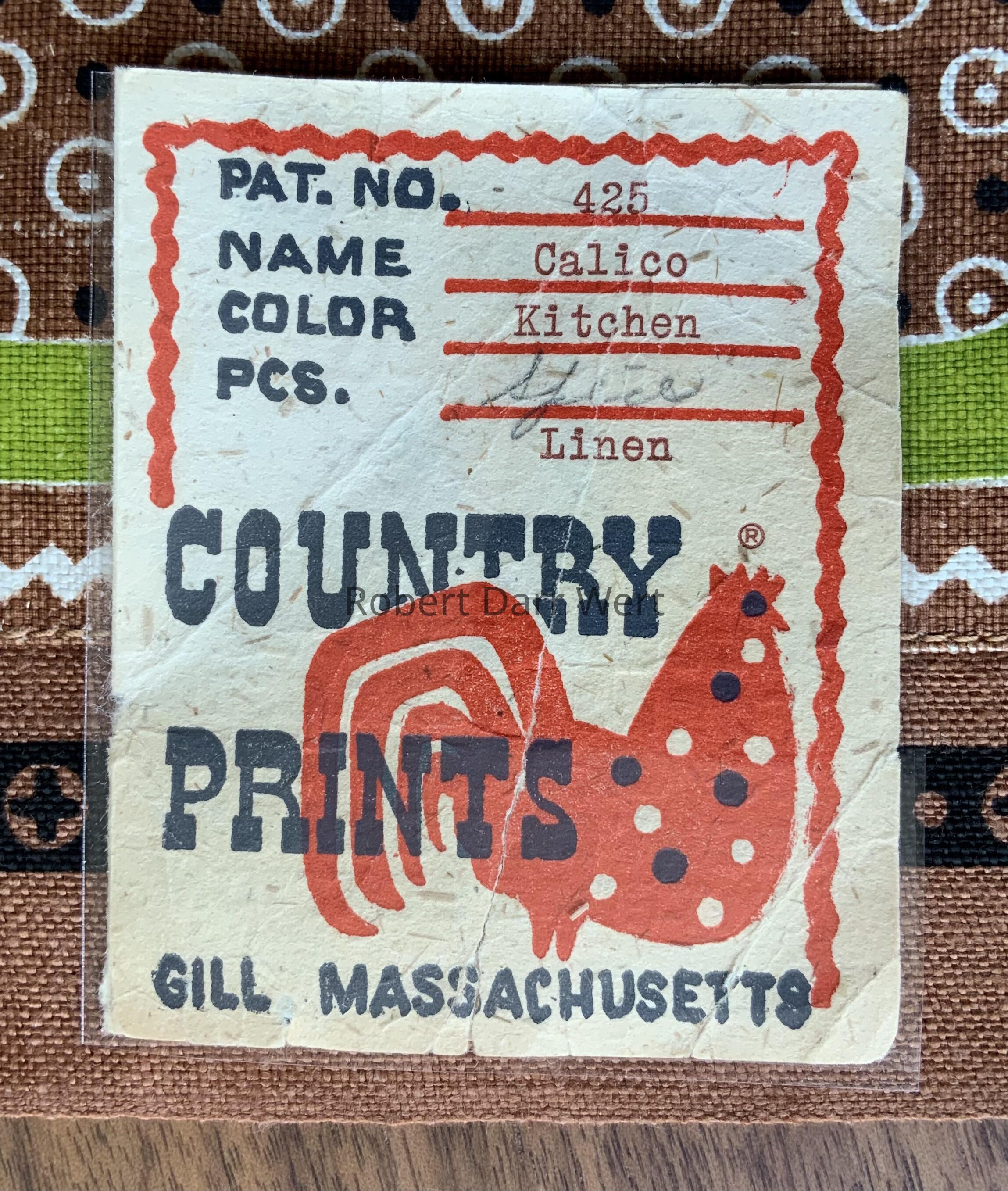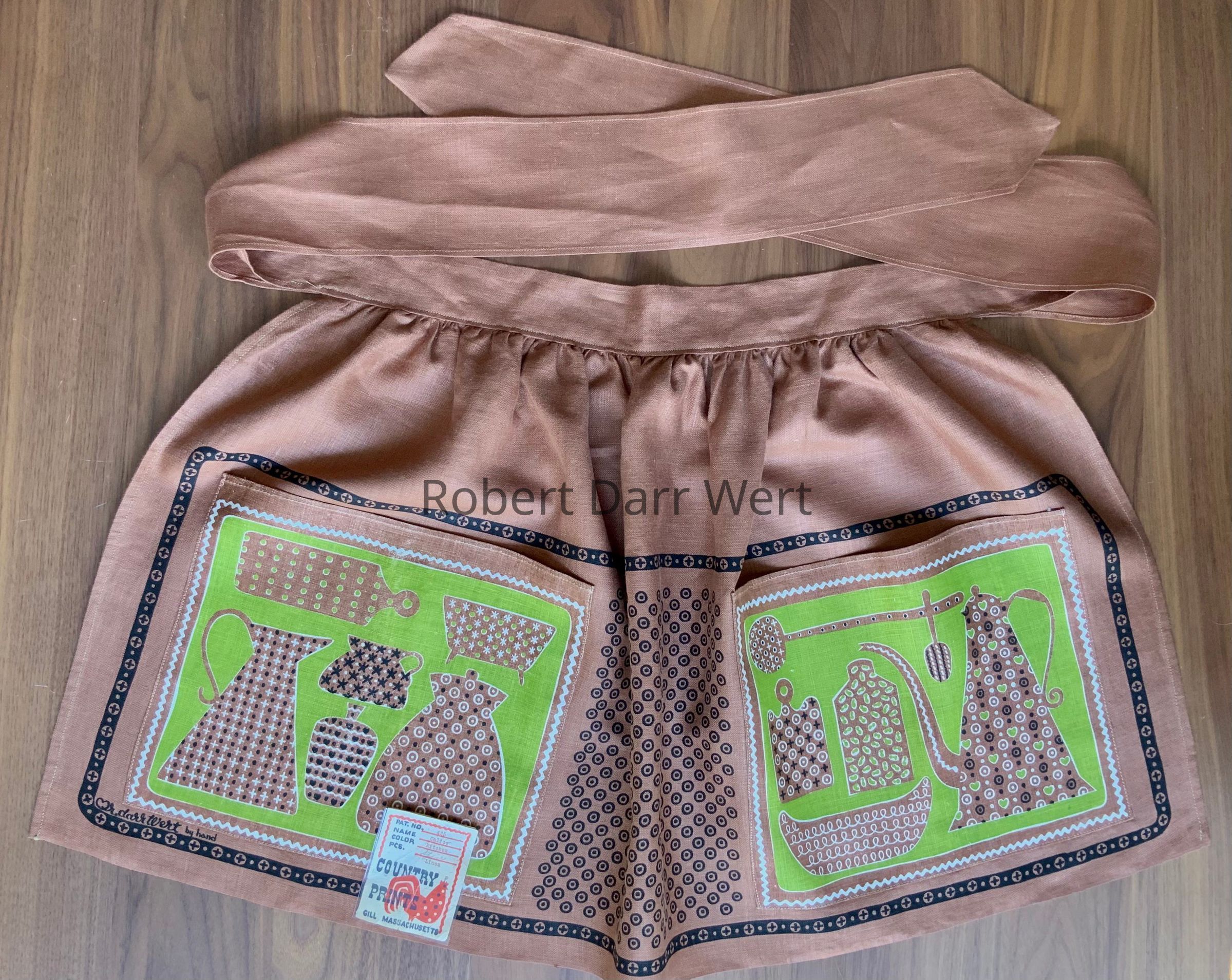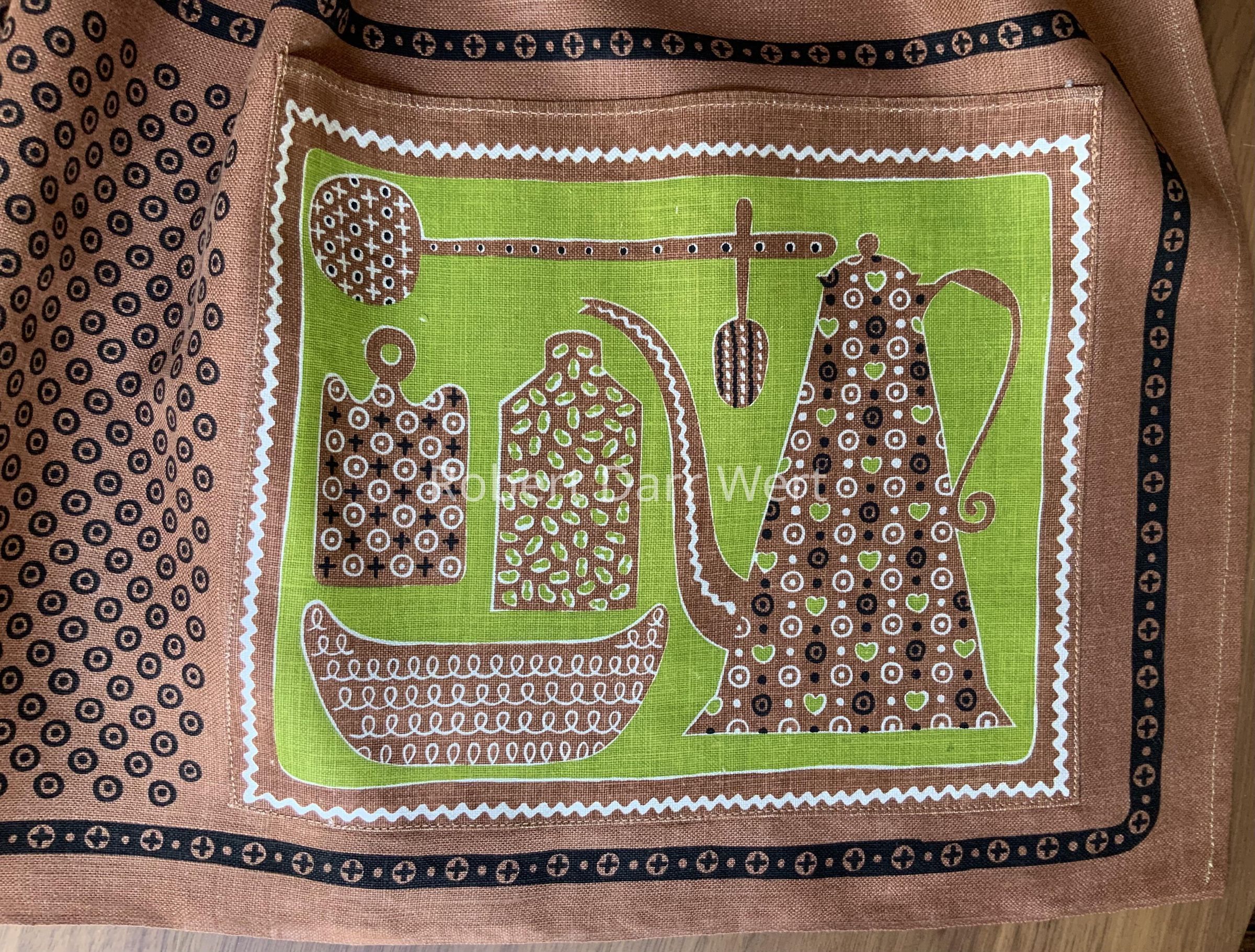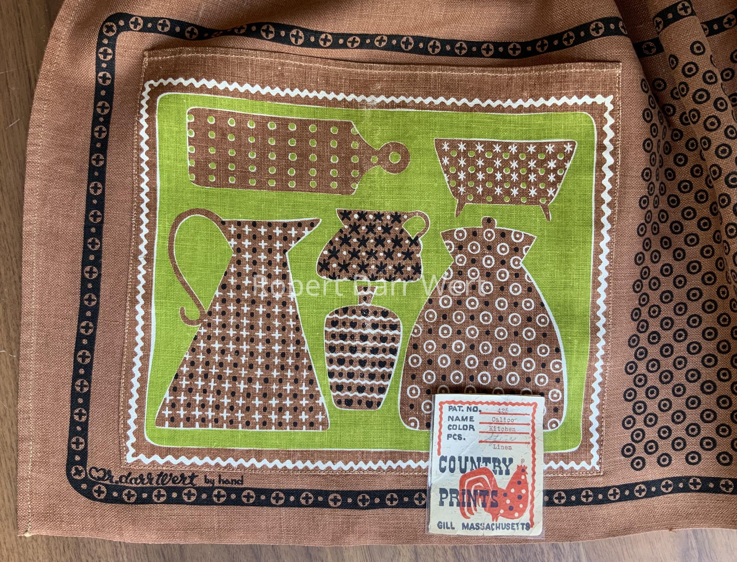 This apron is described in a c.1955 Country Prints price list, “Calico pots on Early Blue or Spice Brown.”Made/Created