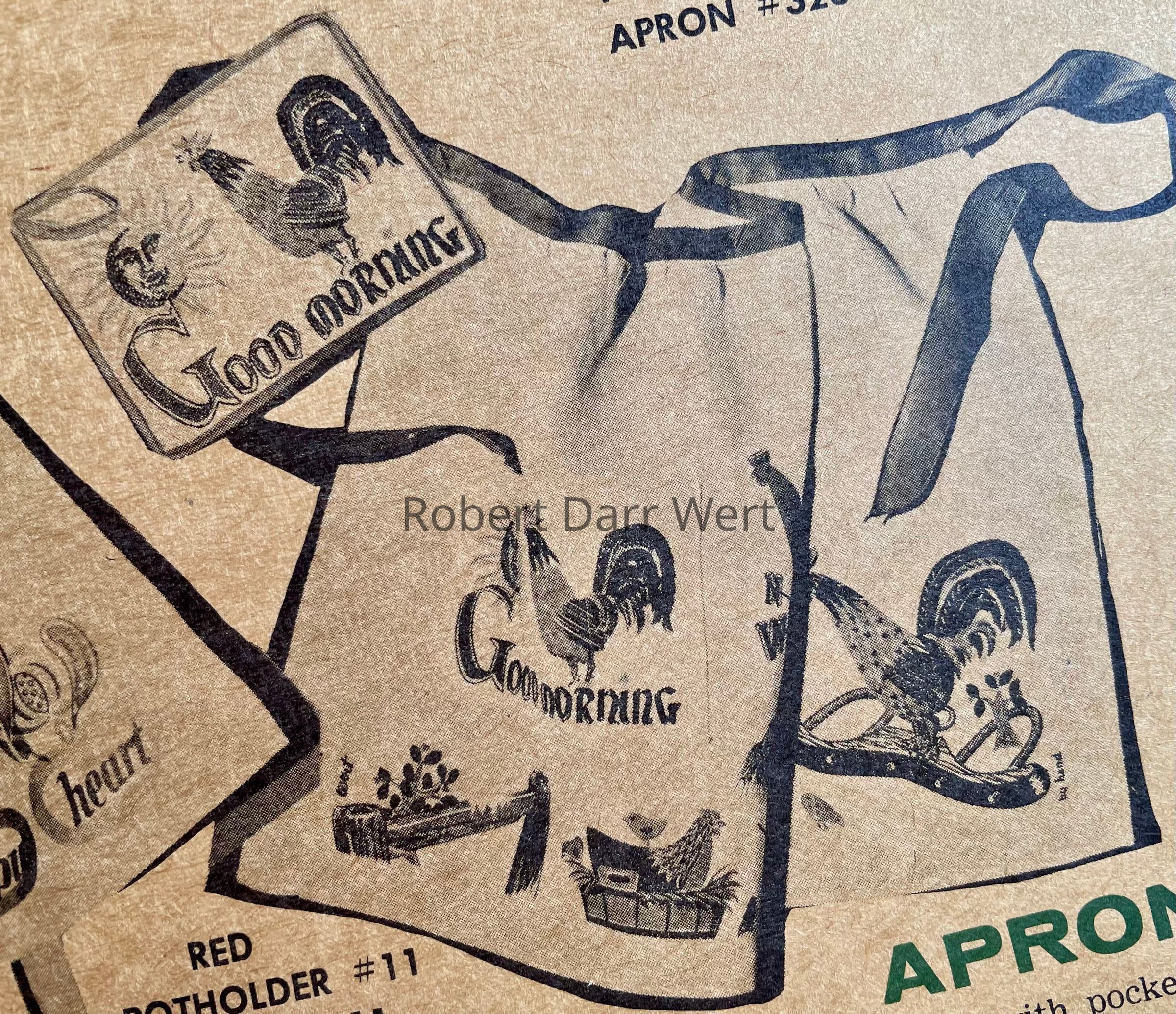 This apron appears in the brochure “Fall and Christmas 1965, Robert Darr Wert/Country Prints”; see images.
