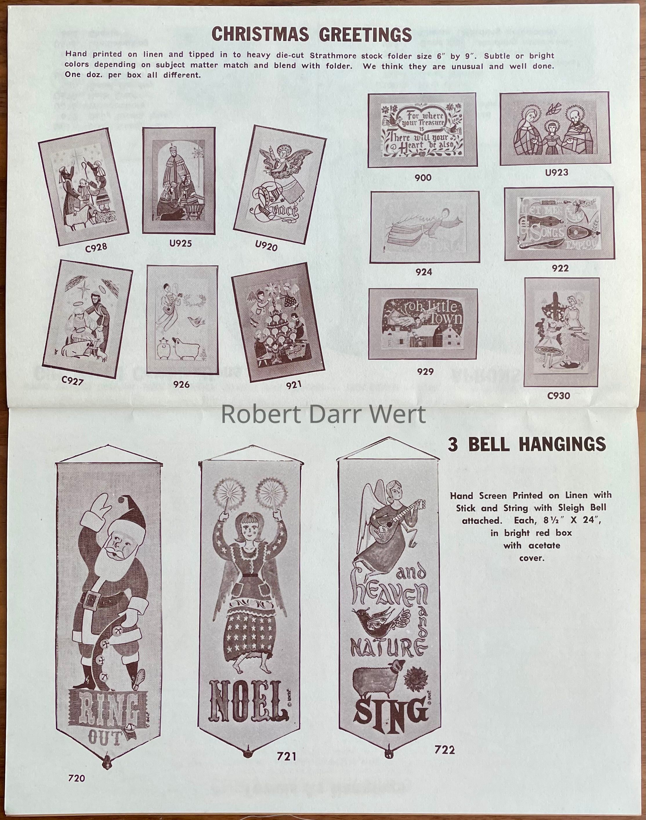 This brochure includes artwork that was not produced by Robert Darr Wert, including the Wert family’s 1966 Christmas card initialed by another artist, the first sent out after Bob’s death in January 1966.Inscription/Signature/Marks