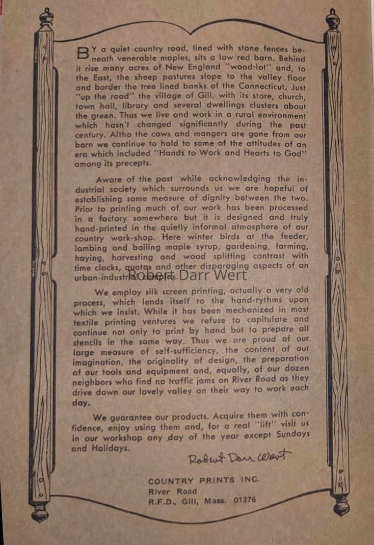 Branding, Brochure: c.1967 Country Prints by Robert Darr Wert and Neighbors (Wholesale)Description