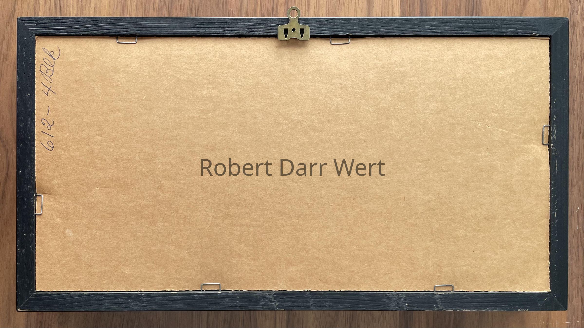 “wert” in black lowercase script, lower left corner; “by hand” in black lowercase print, lower right corner.Dimensions
