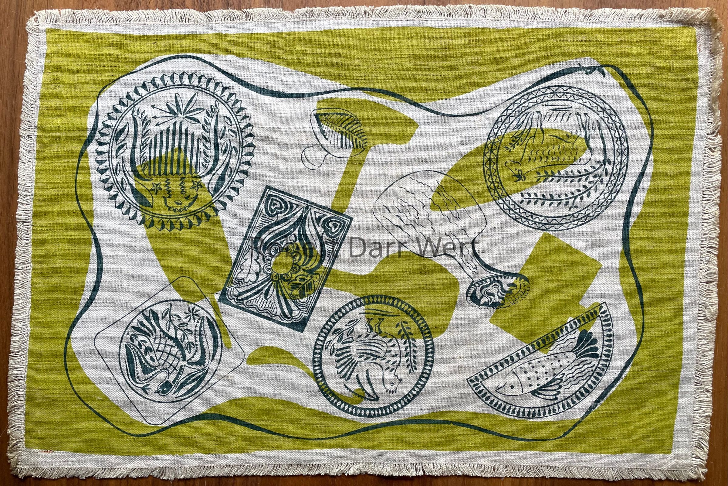Placemat: Buttermold 117, c.1949, Two-Color, Chartreuse & BlueDescription