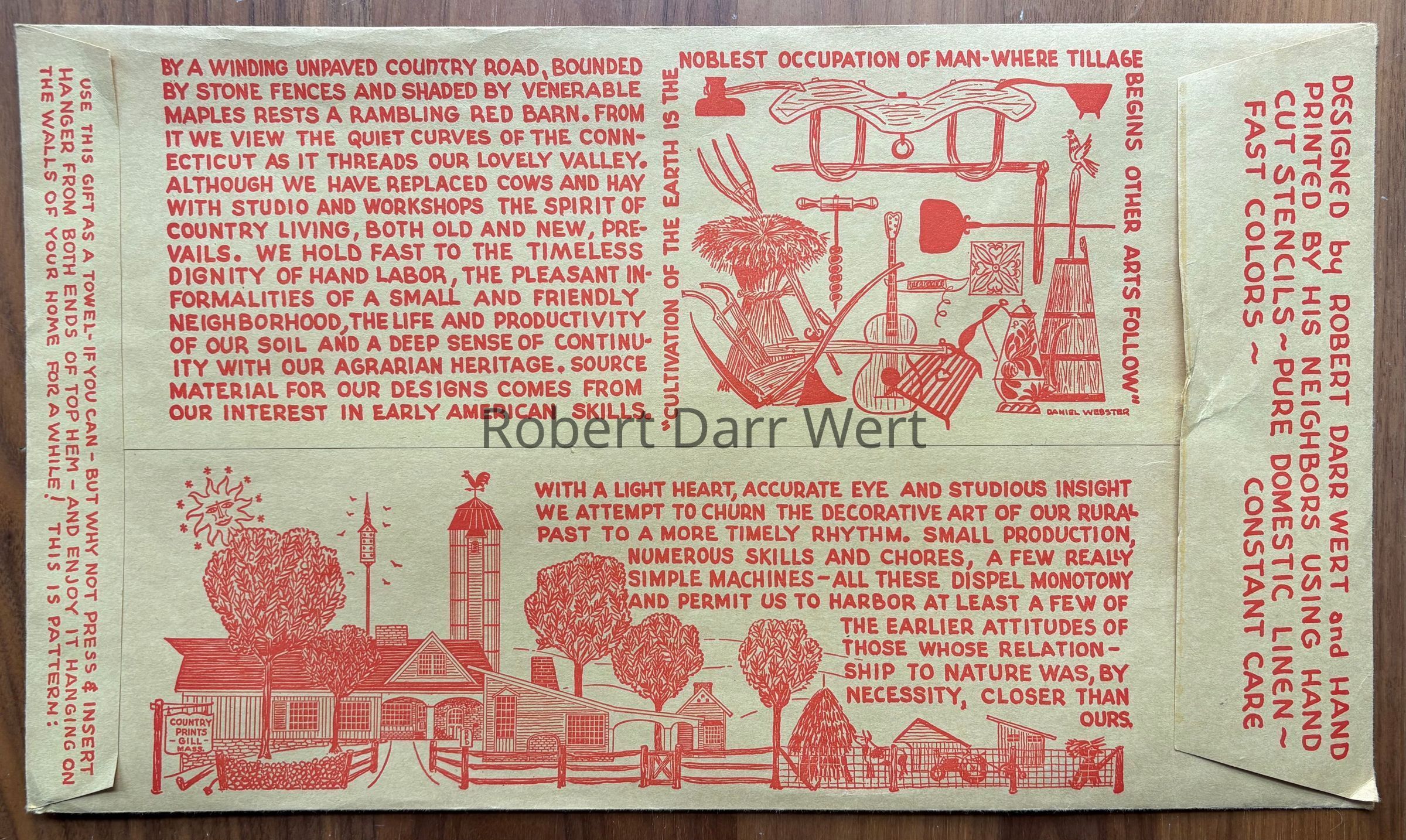 A Country Prints shipping envelope lavishly embellished with text and illustrations describing the Country Prints business. This silkscreen printed envelope was used by Country Prints in the 1960’s.