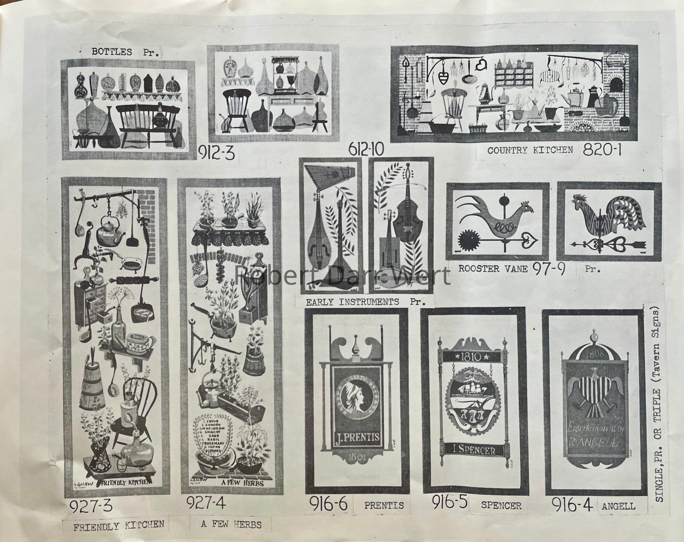 This pair of prints is listed in the January 1960 Country Prints price list, and appears in the c.1960 brochure “Country Prints in Frames Designed by Robert Darr Wert”. Prints were produced in a choice of antique birch or flat black frames.Made/Created