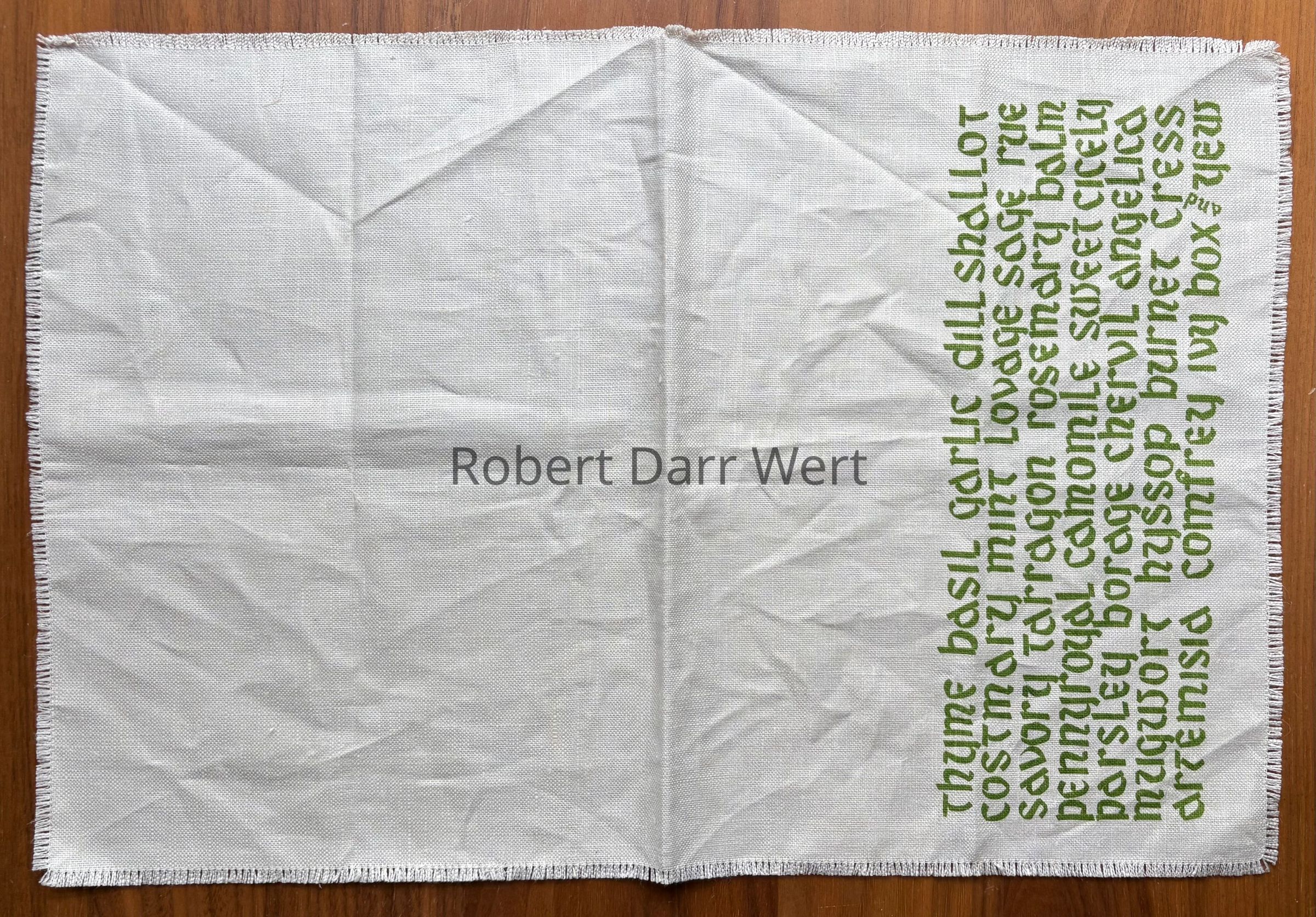 Placemat: “wert by hand”, lower left corner.