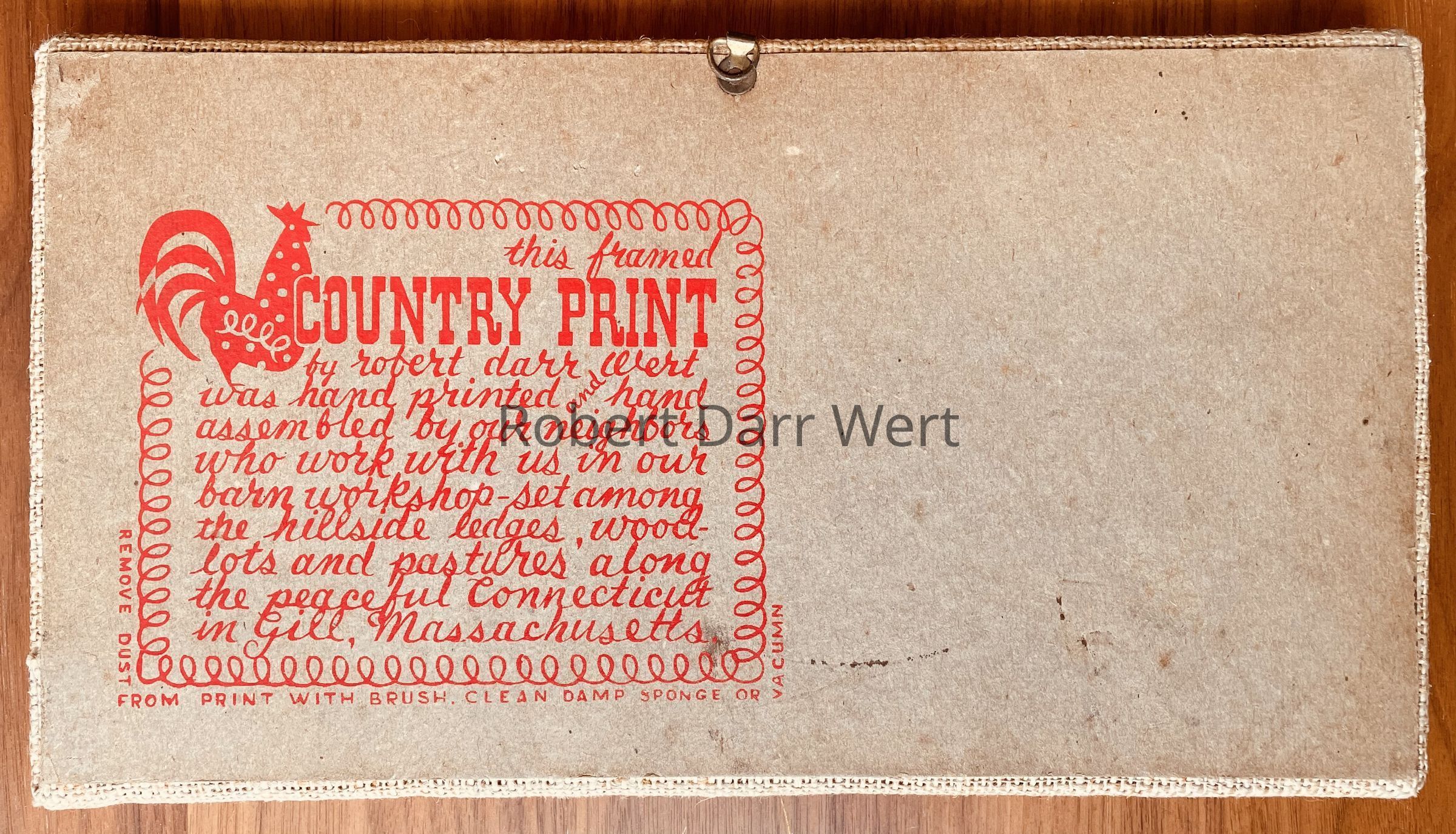 This Wall Board is listed in the January 1960 Country Prints price list, and appears in the brochure “Country Prints in Frames designed by Robert Darr Wert”, c.1960.Made/Created