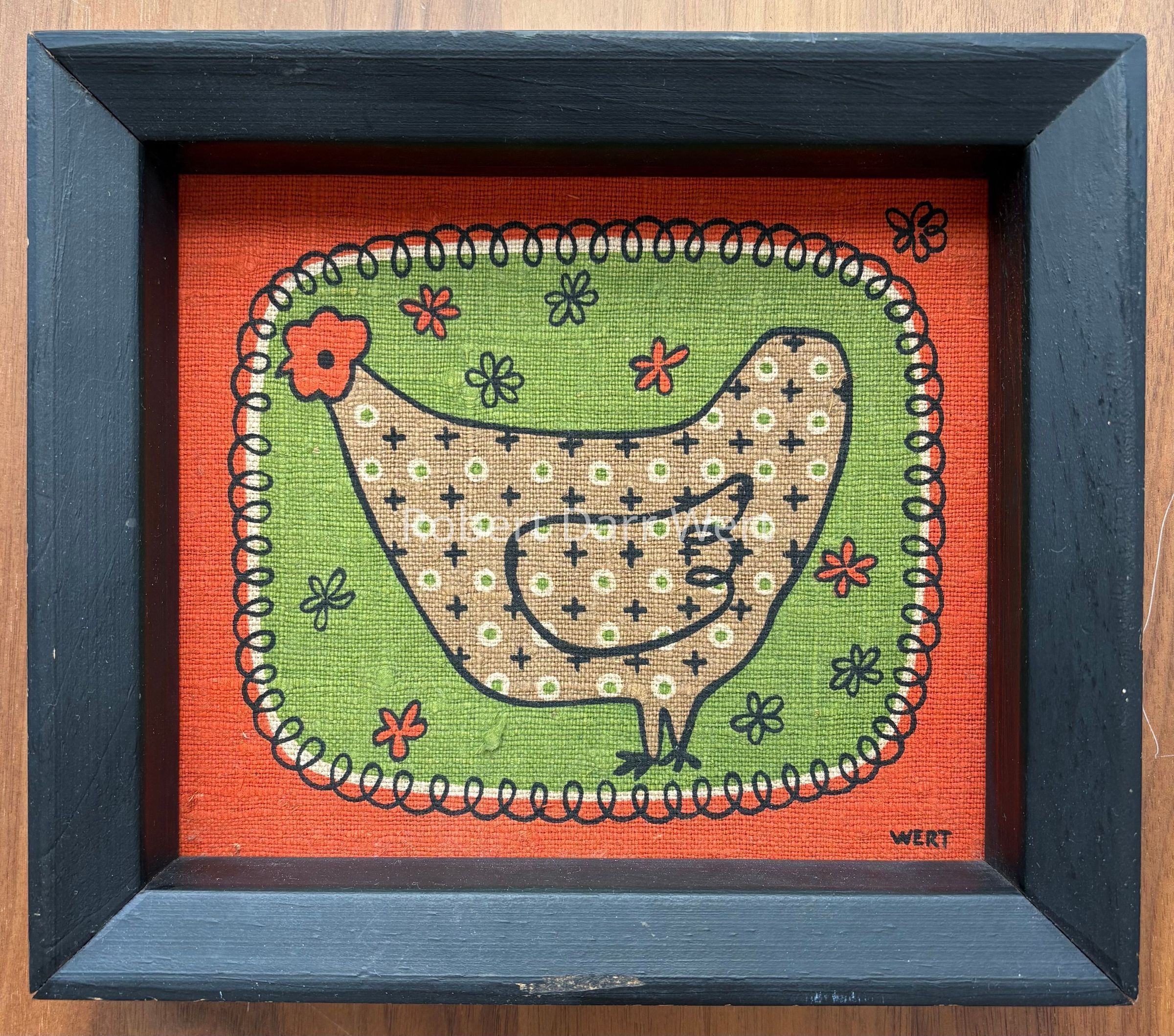 “WERT”, in block print, lower left on rooster print and lower right on hen print.Dimensions