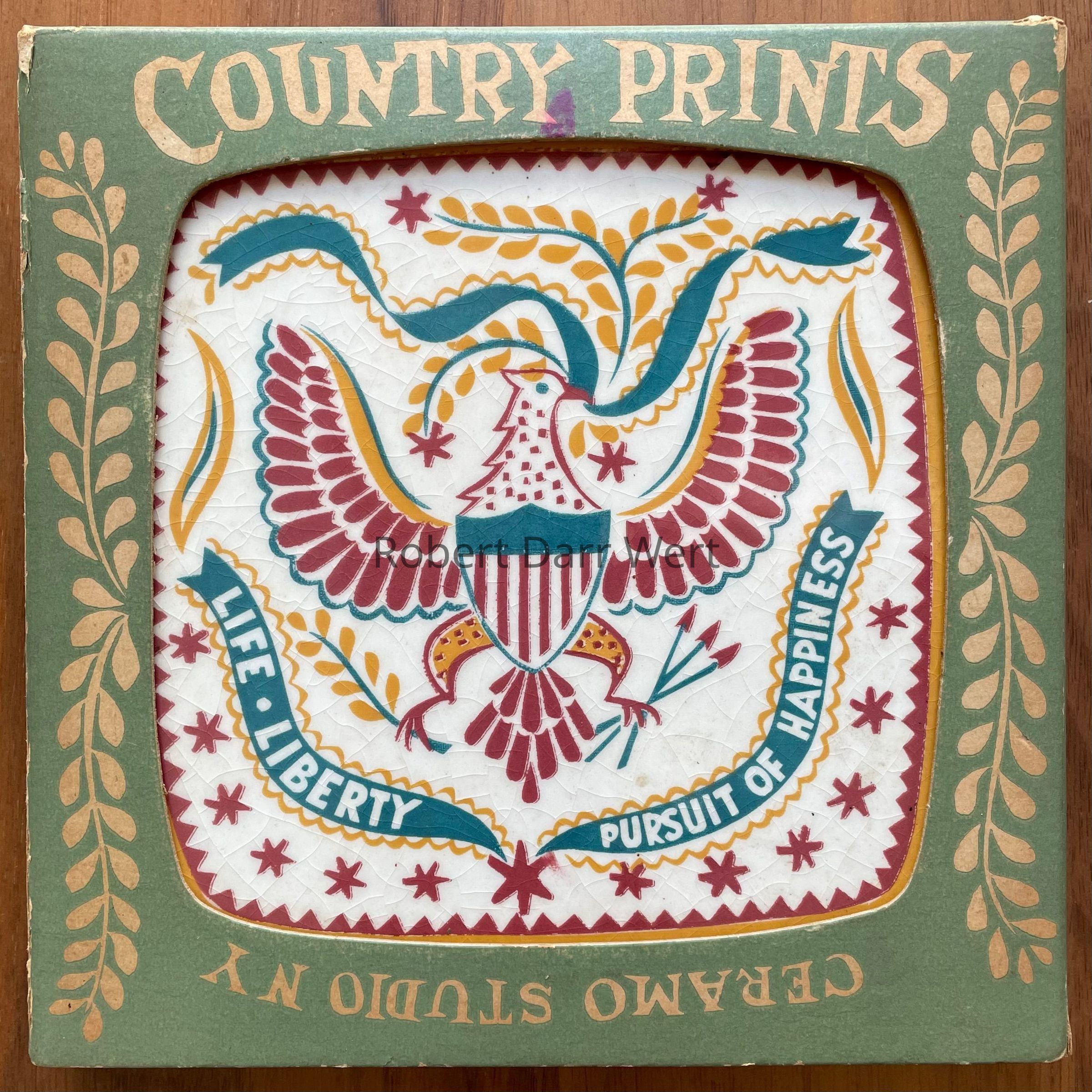 “COUNTRY PRINTS” and “CERAMO STUDIO NY”, on box face.Dimensions