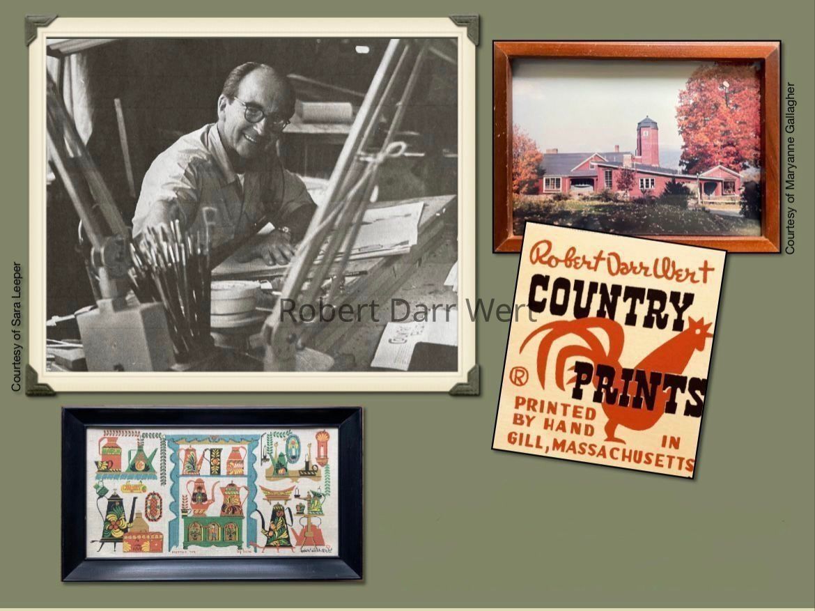 “By a quiet country road under great maples, high above the valley of the Connecticut, sits a low red barn. Here, with the help of friendly neighbors, COUNTRY PRINTS by Robert Darr Wert are made - almost entirely by hand.”