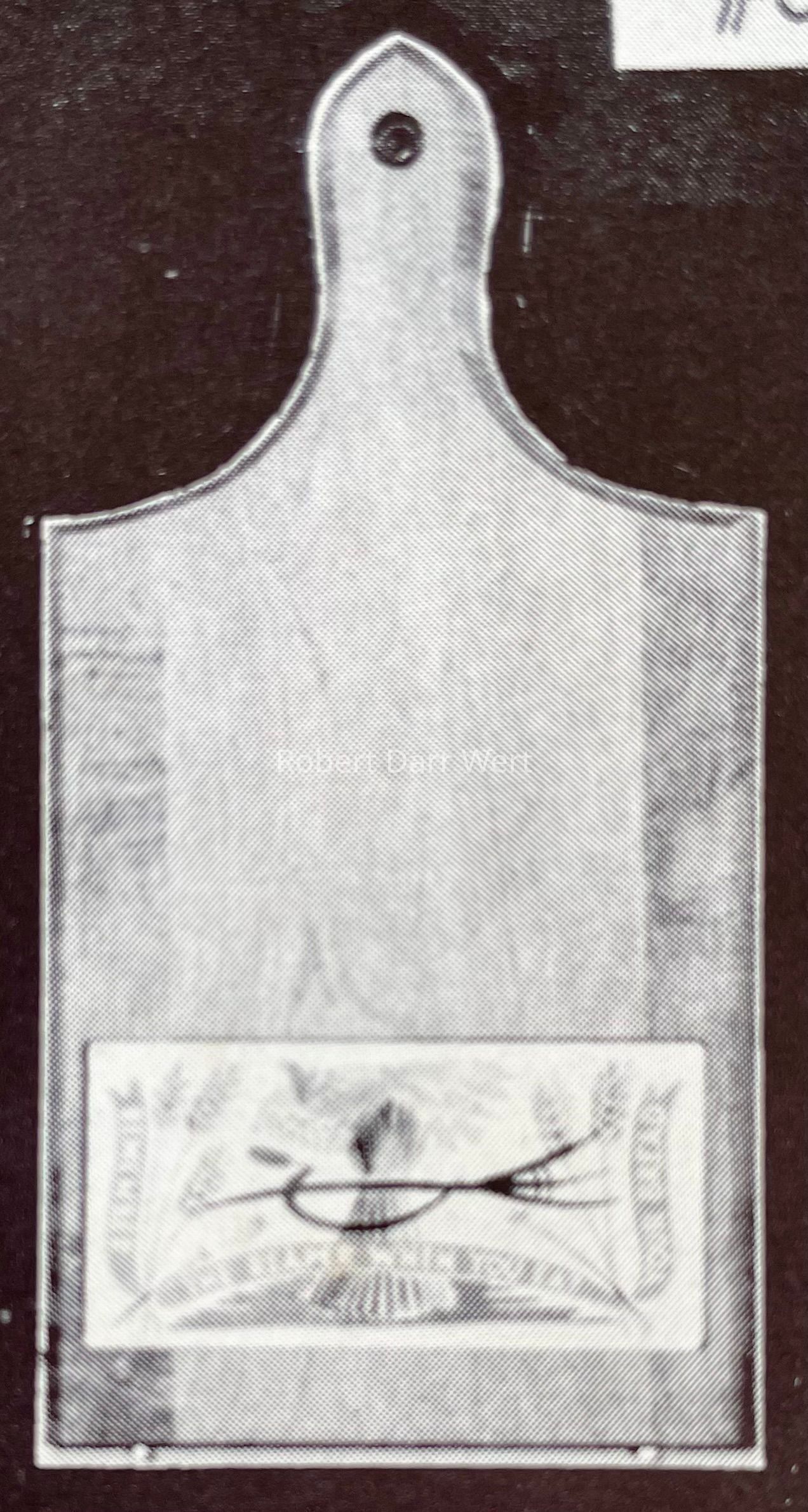 Tile and breadboard designed by Robert Darr Wert. Tile produced by Ceramo Studio, NYC. Breadboard produced by a fabricator near Gill, MA. Breadboard with tile assembled and finished by Country Prints.