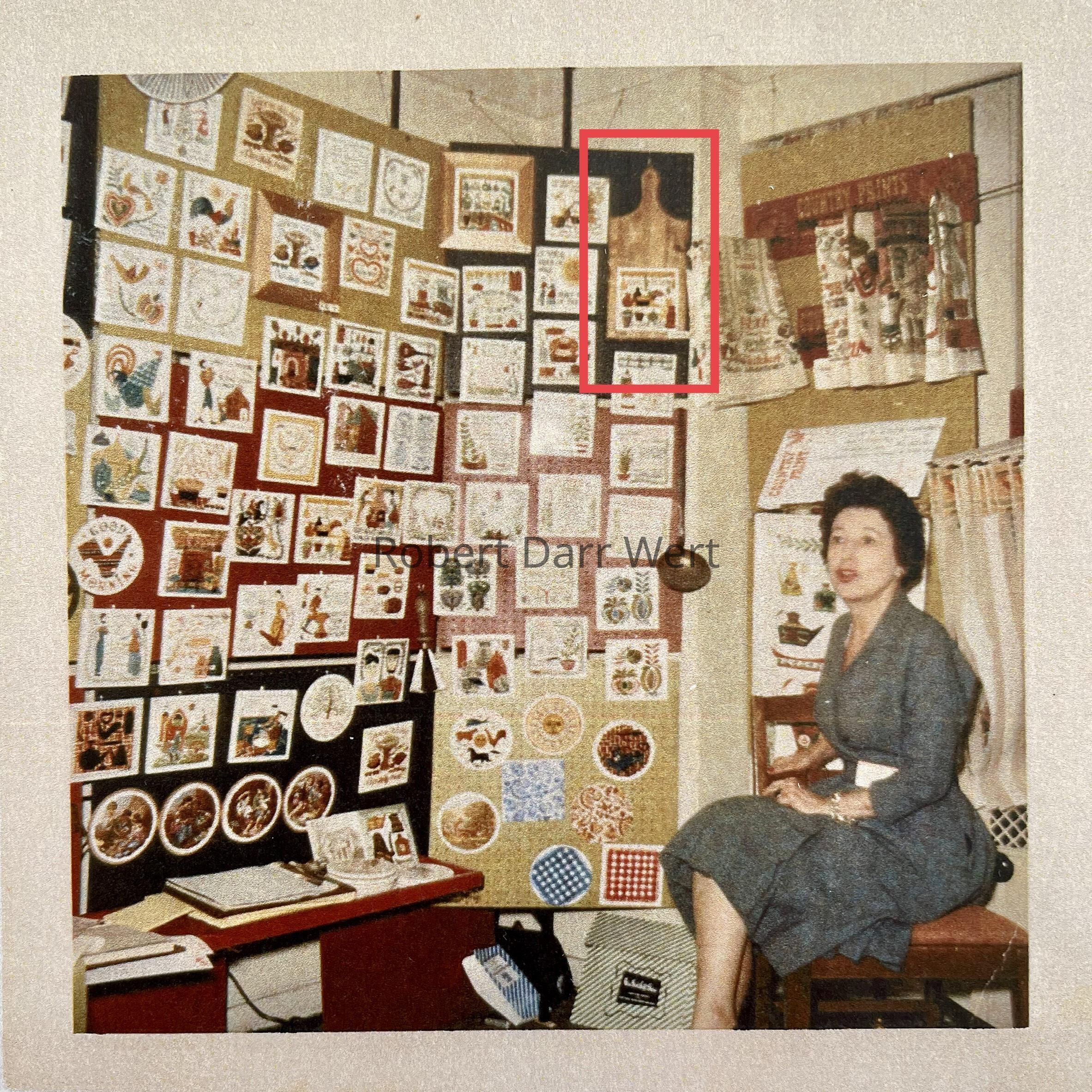 A breadboard with an inset Country Prints tile, c.1965.Made/Created