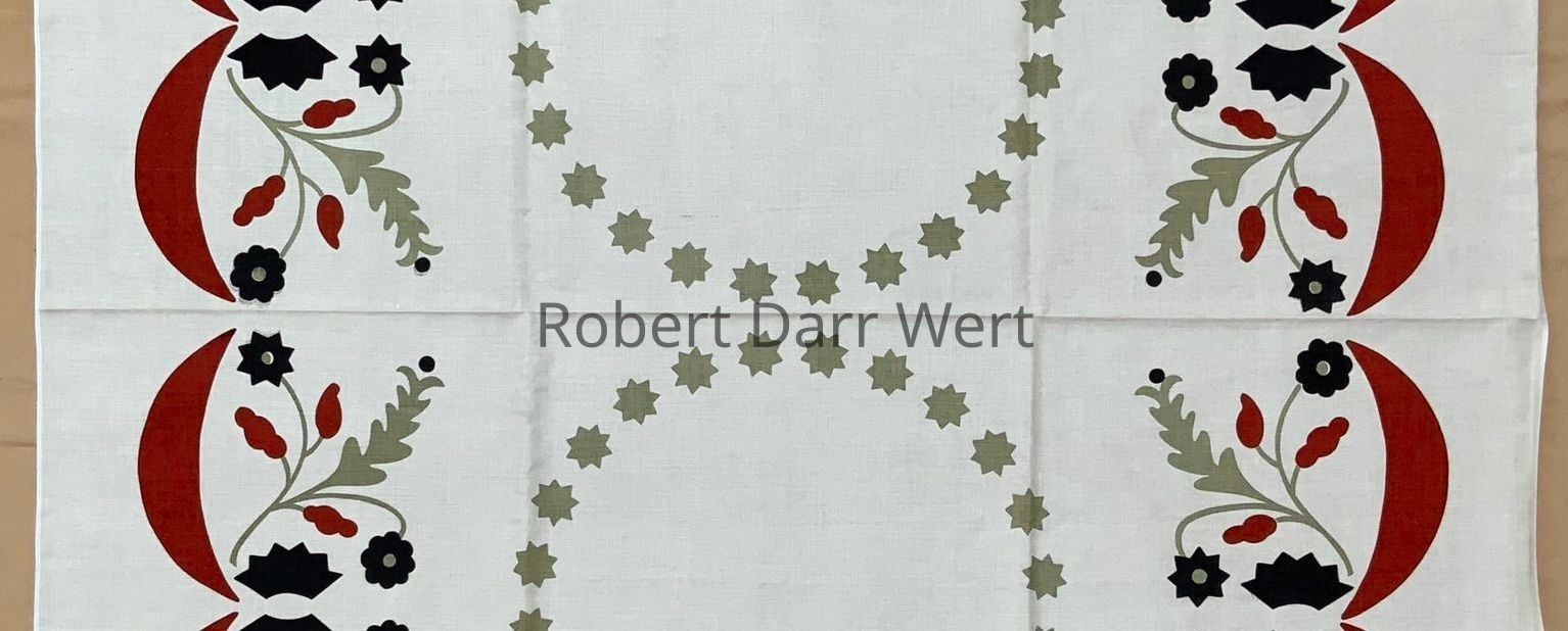 “r. darr wert by hand”, lower left corners of narrow ends.Material