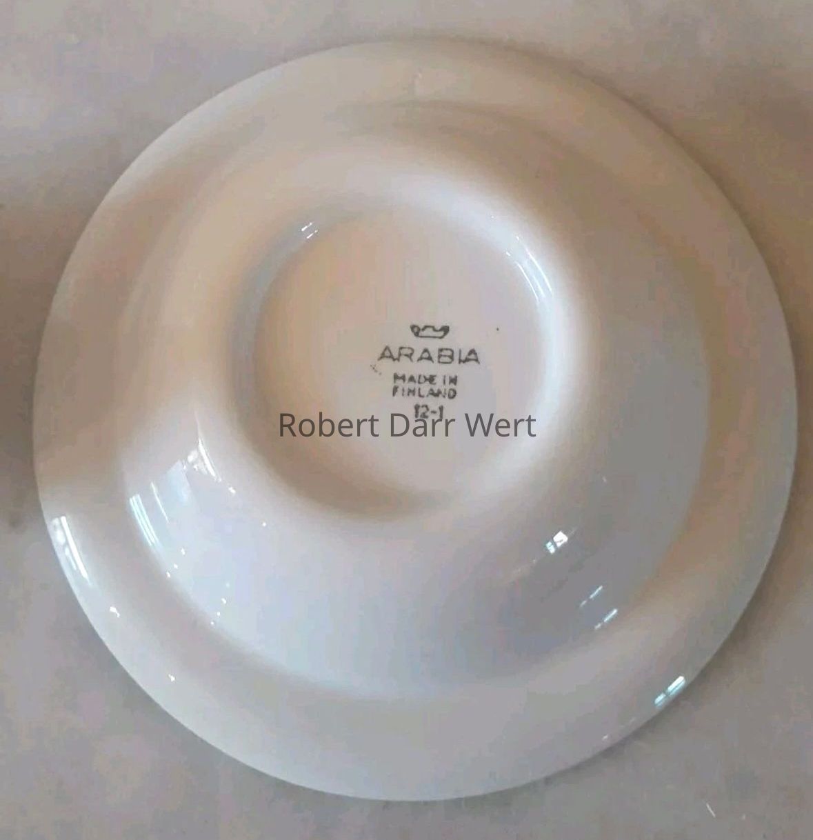 Most likely produced for Twining & Buck of Salisbury, Connecticut, a high end retailer of modern home furnishings. Twining & Buck had relationships with both Arabia and Country Prints from the time the shop opened in 1950. Based on a December 1956 editorial in Craft Horizons magazine, textile historian Susan Ward believes it is most likely Twining & Buck engaged Robert Darr Wert to produce silkscreen printed bibs and placemat sets to match the Arabia Finland china in their inventory. Arabia Finland knows of no such working relationship between their company and Wert. Several baby bibs and two placemat sets have been documented under the name “Waertsila Linens Hand Printed by Robert Darr Wert”; see “Waertsila Linens by Robert Darr Wert” entries.Made/Created