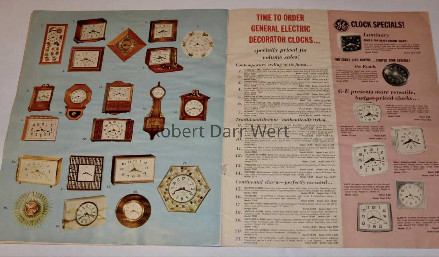 This model appears in GE’s “1962-1963 Clocks” catalog and “Wholesale Gift Catalog/Holiday ‘63” along with one authenticated, patented Wert clock and at least one other design that may be by Wert; see images.