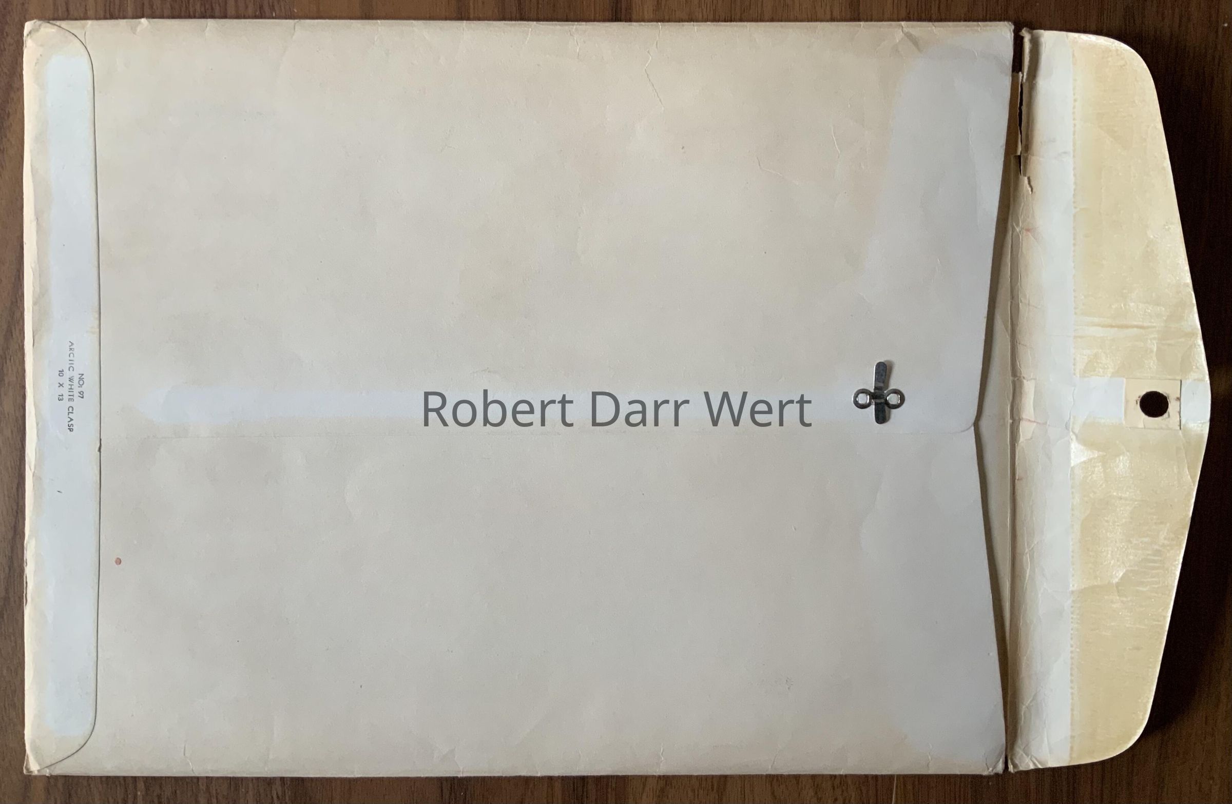 “wert by hand” on large flap; “NO. 97, ARCTIC WHITE CLASP, 10 X 13”, on small factory sealed flap.Materials