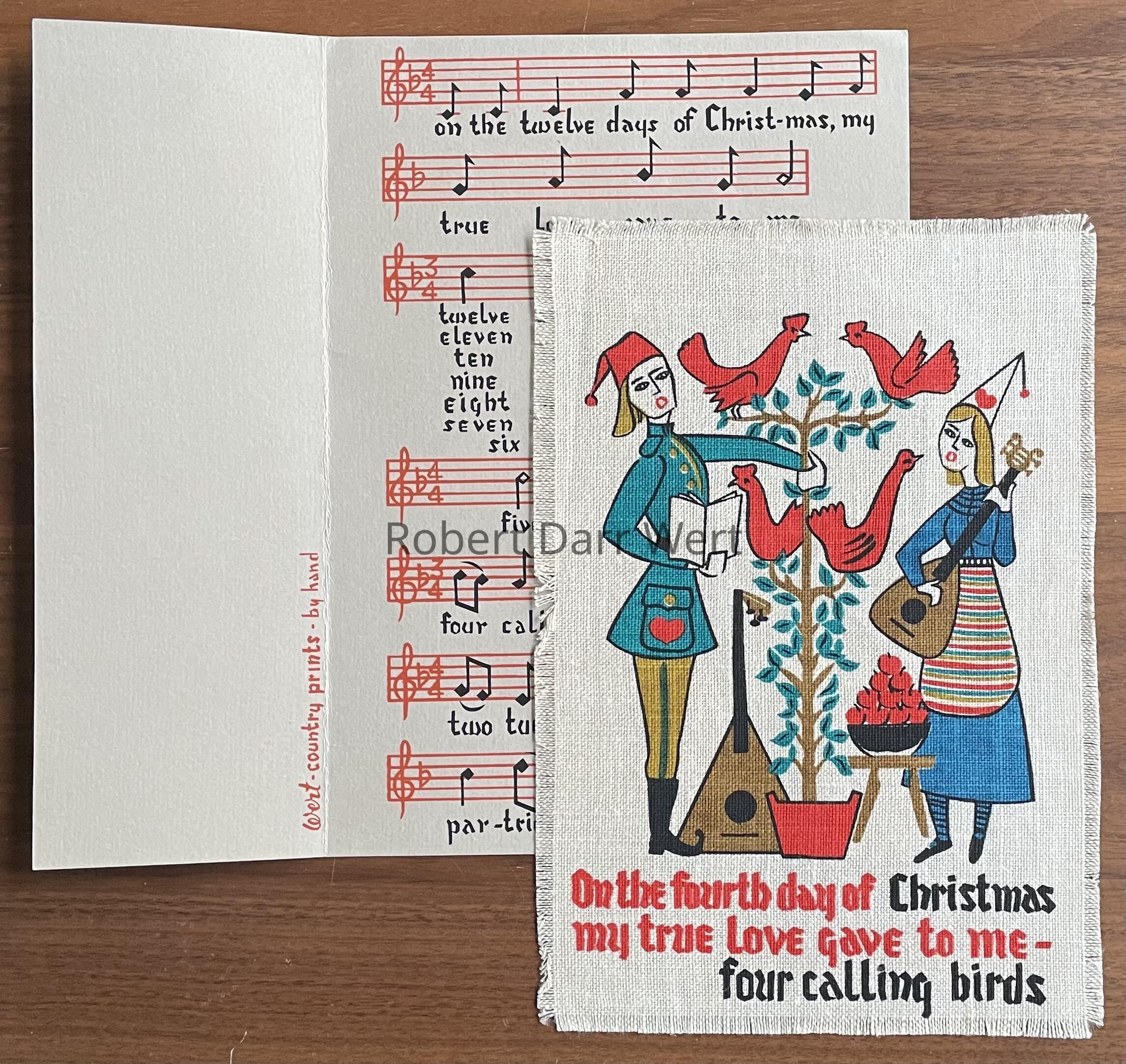 Gift Greeting, Christmas: Twelve Days, Fourth Day; with Twelve Days folio, c.1955Description