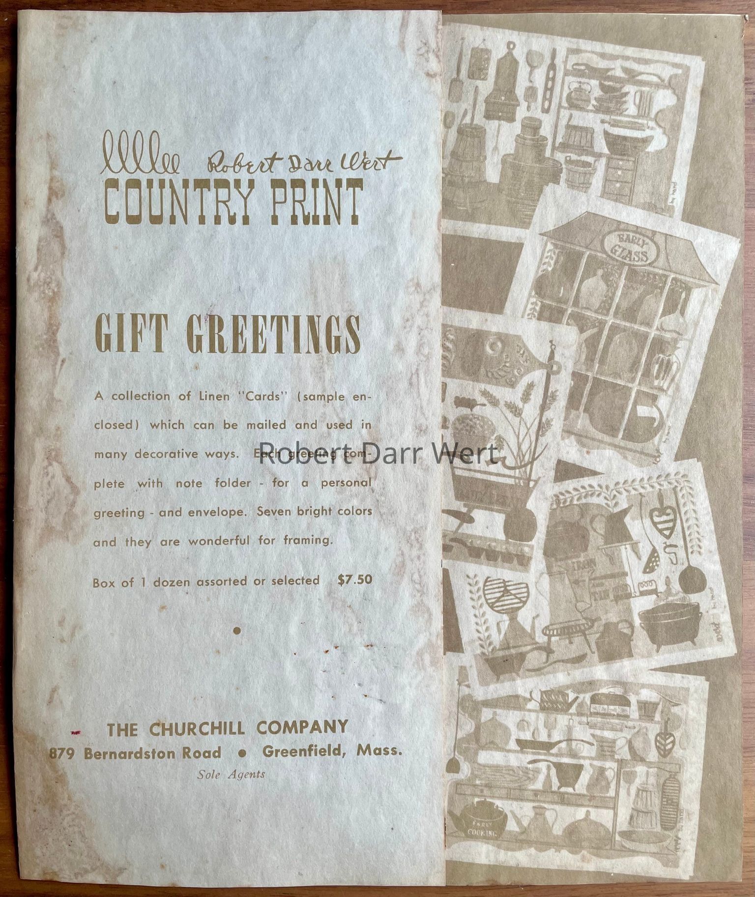 This print appears in the c.1955 brochure “Robert Darr Wert/Country Print Gift Greetings”; see images.