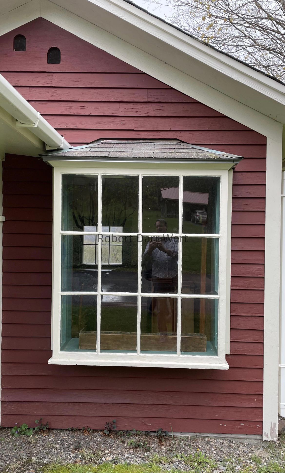 This image was inspired by Wert’s personal collection of early glass bottles as well as the window of the former milk house adjacent to his barn studio in Gill, Massachusetts. See image below.
