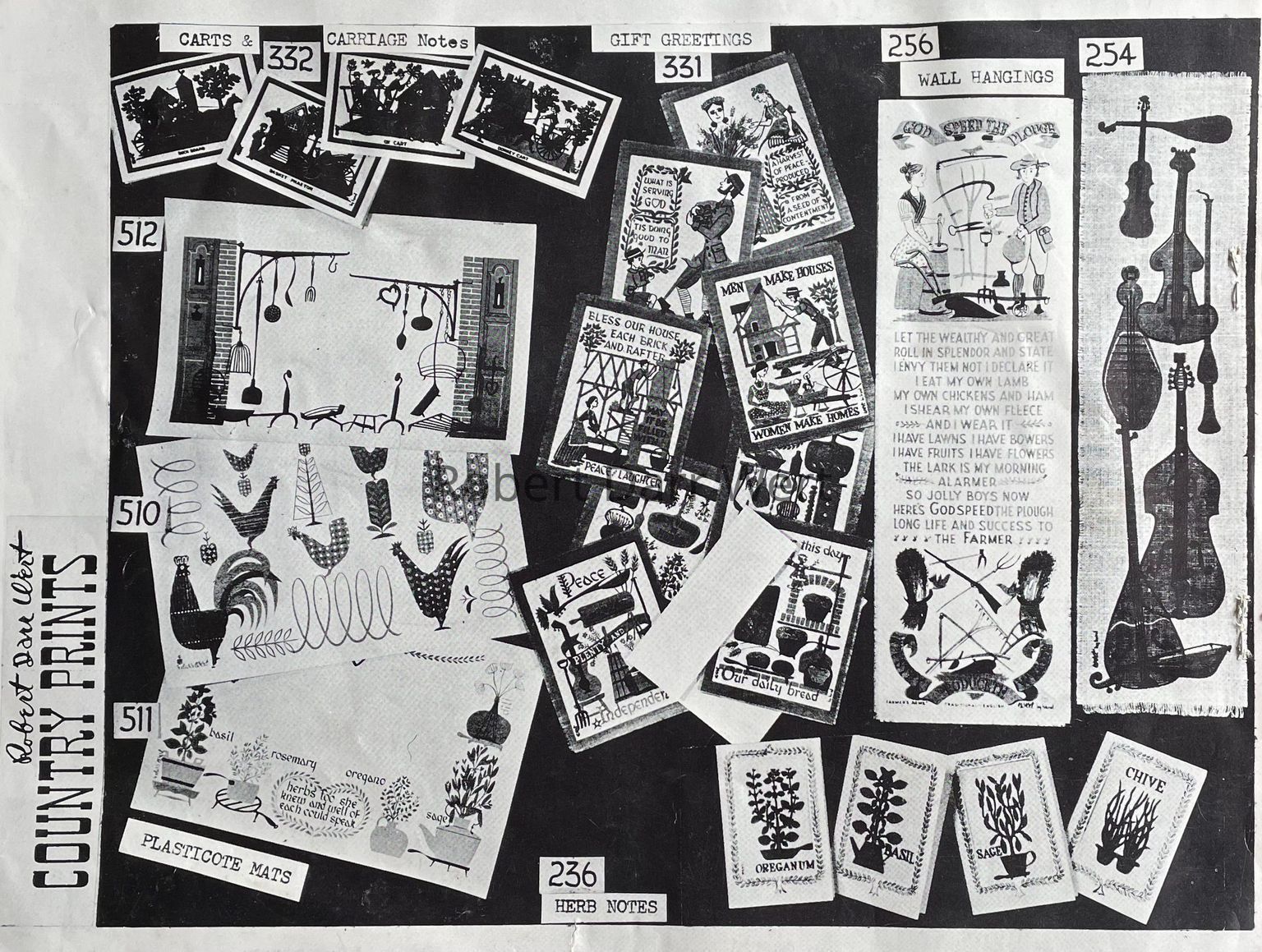 This Gift Greeting appears in the c.1960 brochure “Mat Sets by Robert Darr Wert/Country Prints”; see images.