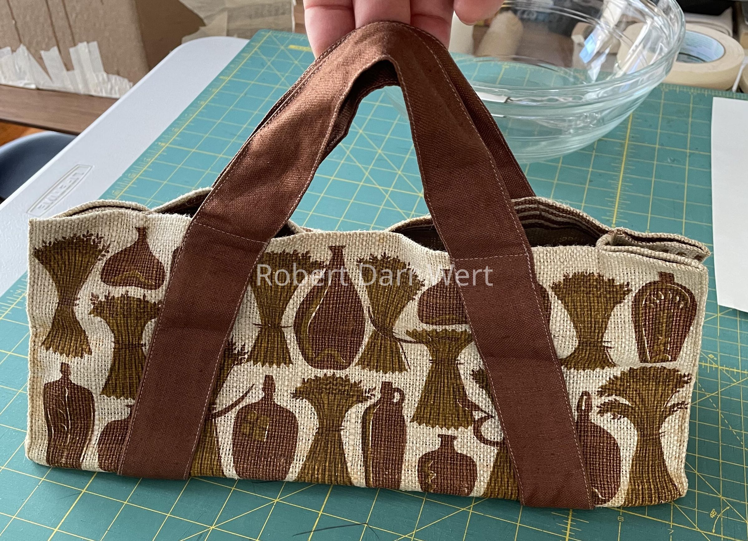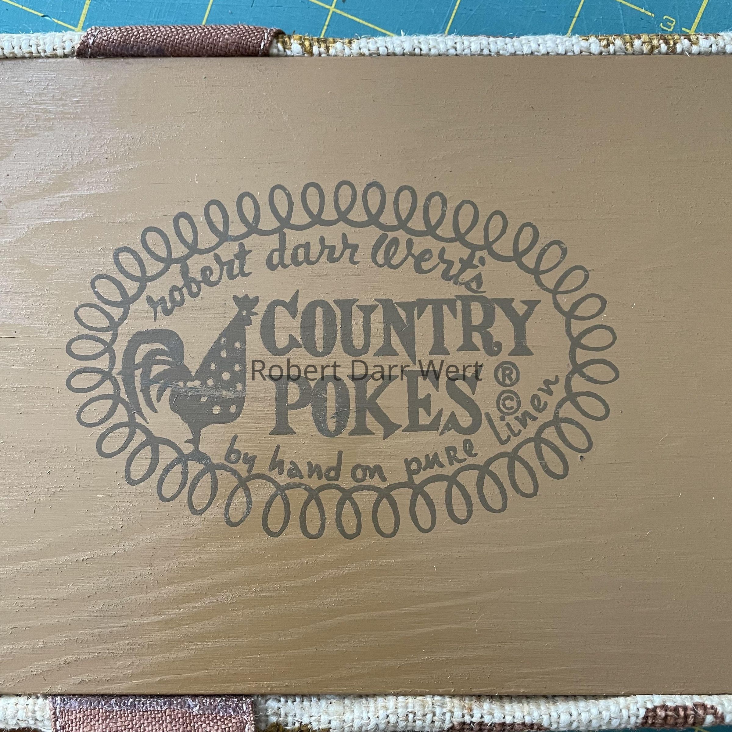 “robert darr wert’s COUNTRY POKES ® © by hand on pure linen”, bottom face of foundation board.Dimensions