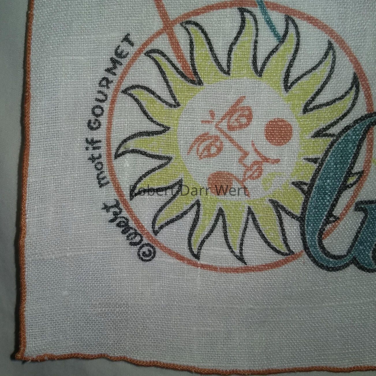 “© wert motif GOURMET”, bottom left corner; “by hand on pure Linen”, bottom right corner.Material