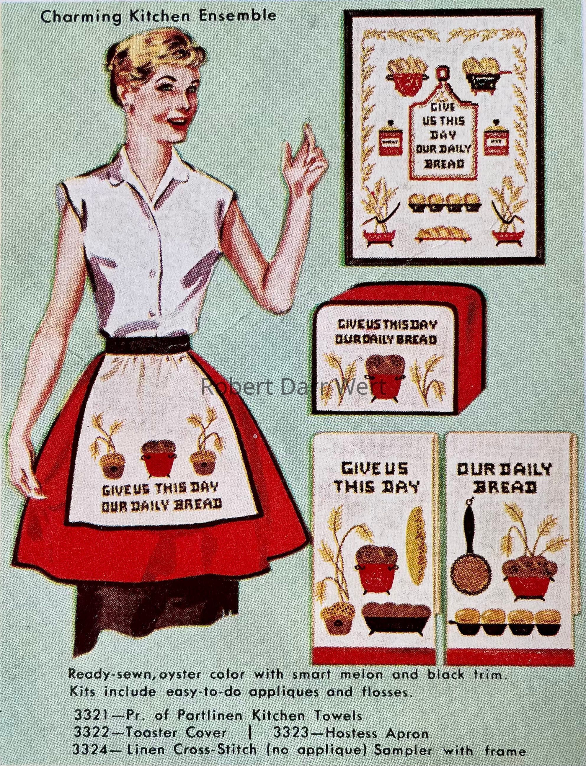 A Bucilla cross stitch and appliqué toaster cover kit based on Country Prints’ “Daily Bread” silkscreen prints; see images. This is one of a suite of kits based on this theme.Made/Created