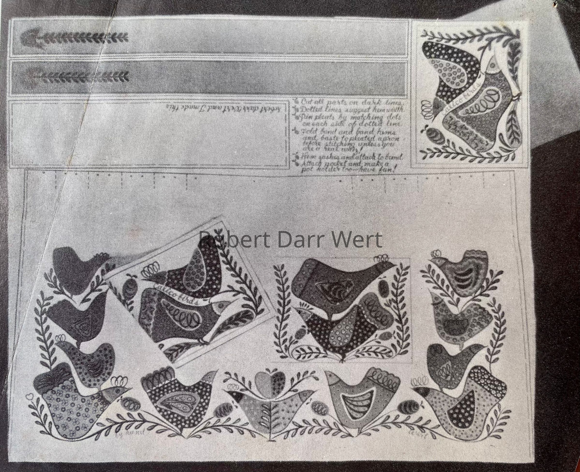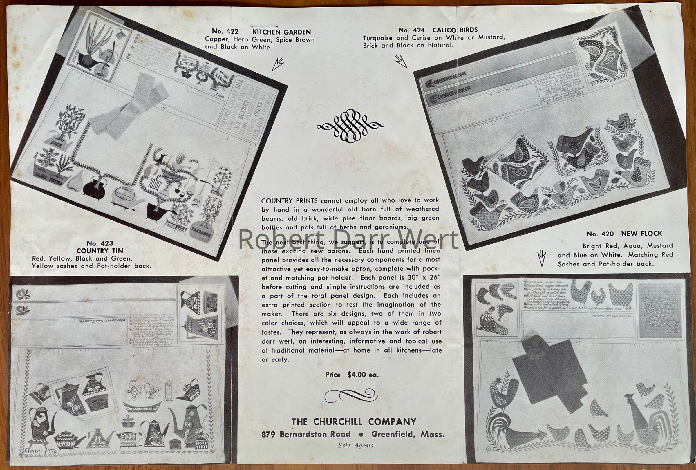 This kit appears in the c.1955 brochure “I-Did-It-Myself Aprons by Robert Darr Wert/Country Prints”; see images.Made/Created