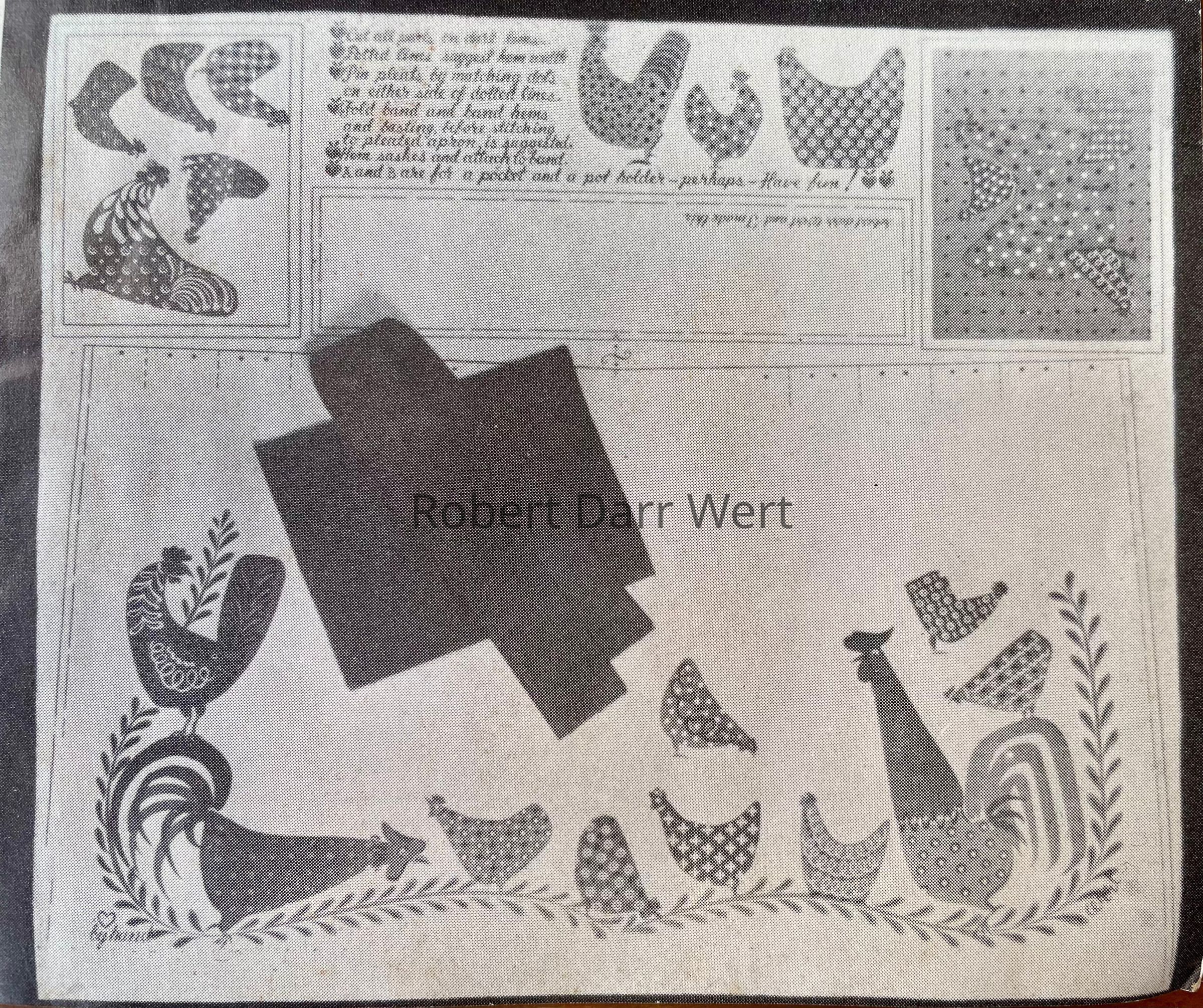 This kit appears in the c.1955 brochure “I-Did-It-Myself Aprons by Robert Darr Wert/Country Prints”. A matching framed print and tile was also produced; see images.Made/Created