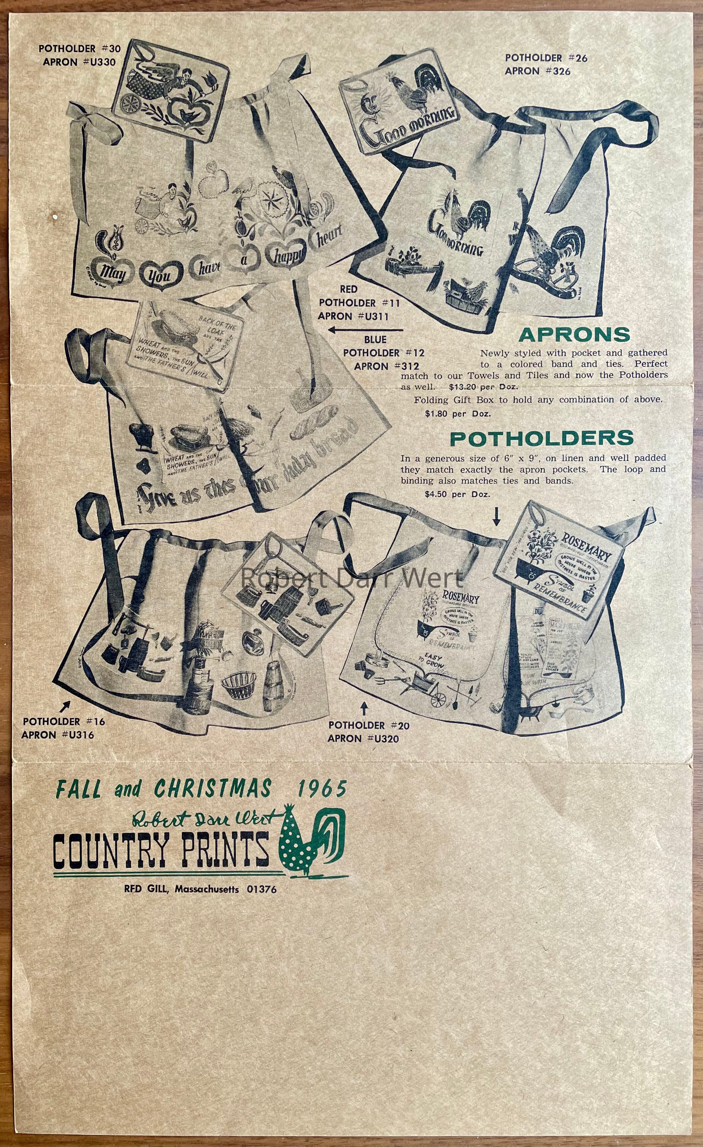 First introduced in 1965, this potholder appears in the brochure “Fall and Christmas 1965, Robert Darr Wert/Country Prints”.Made/Created