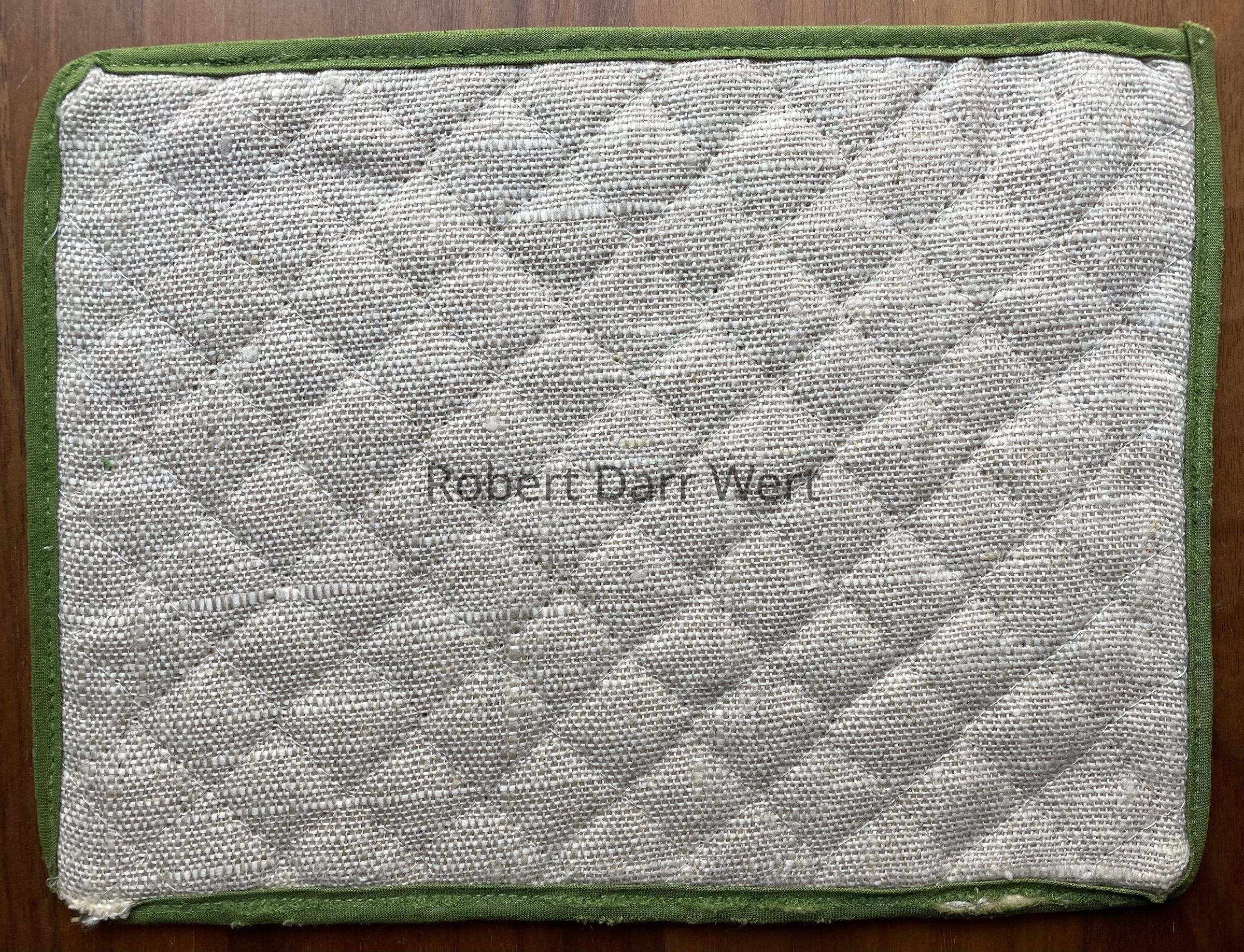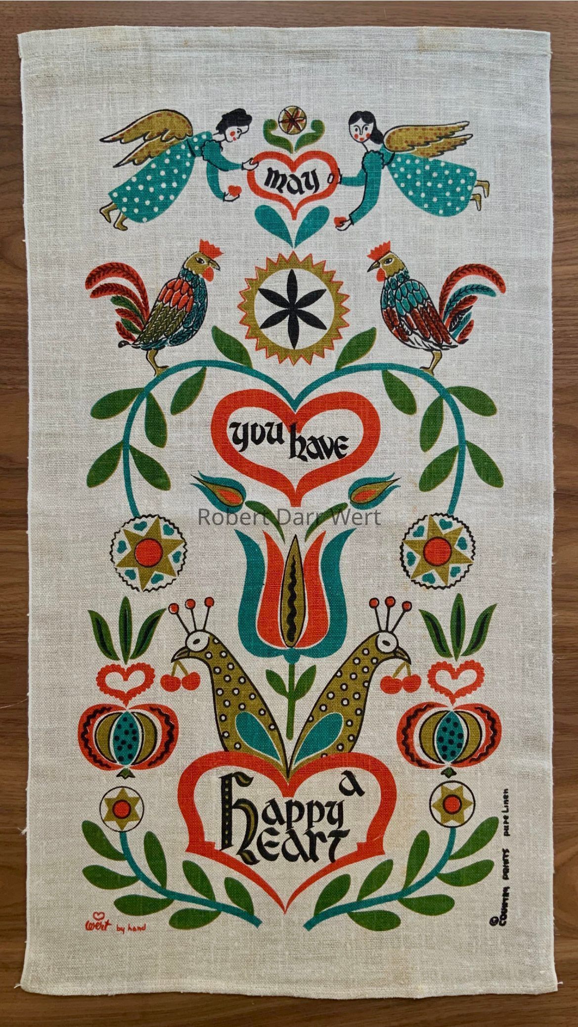 This item is part of a matching suite of kitchen accessories that included a towel/wallhanging, apron, tile, coffee can cover and bottle cover; see images. These items were available individually and in matched gift sets.