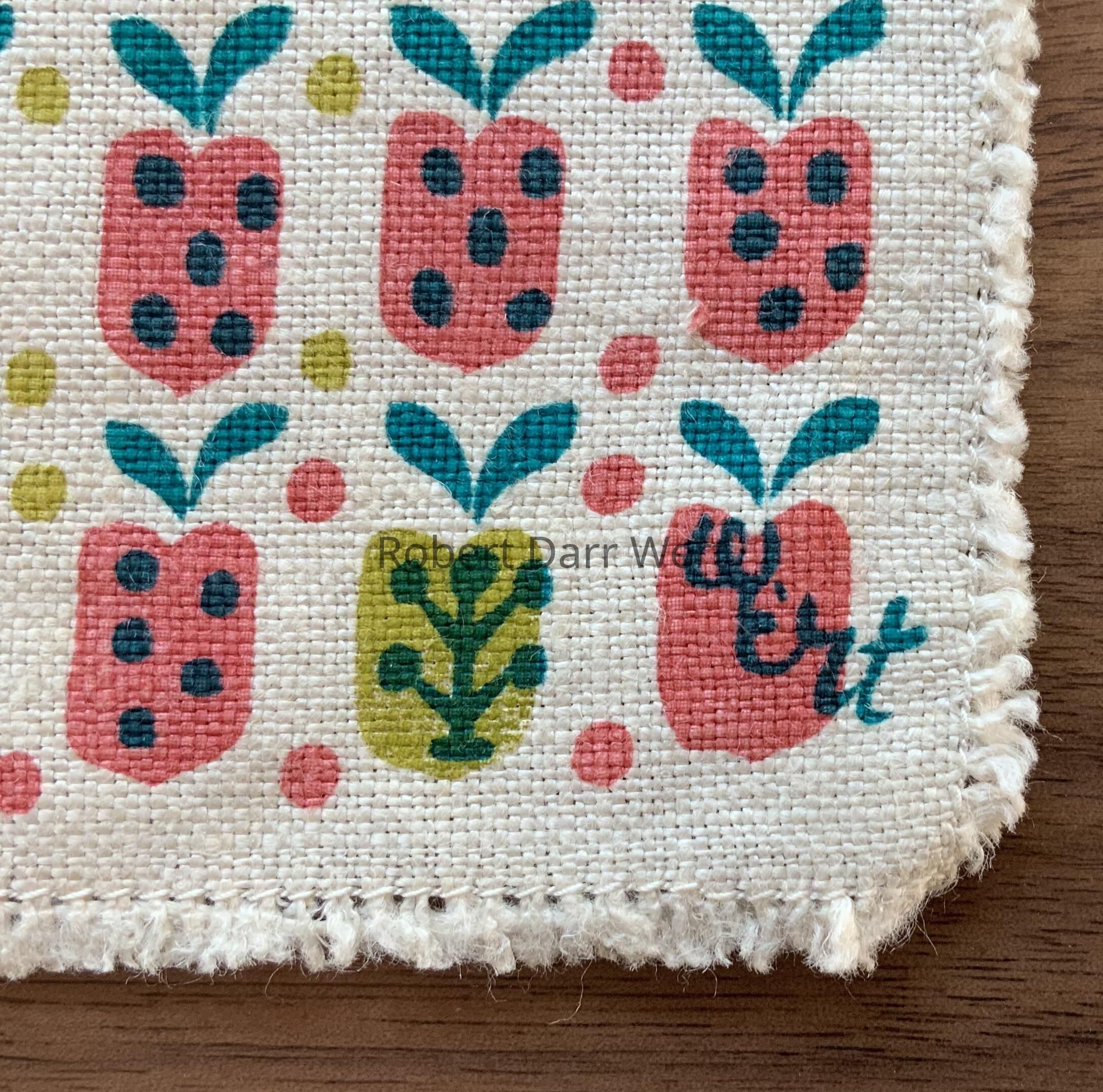 These cocktail napkins appear in the c.1955 brochure “I-Did-It-Myself Aprons by Robert Darr Wert/Country Prints”; see images.