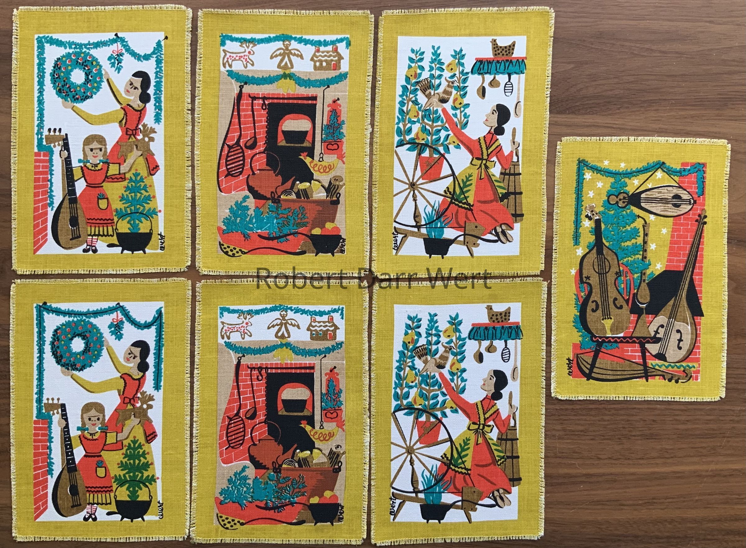 This set is listed on the Christmas 1960 Country Prints price list. The list states, “Four designs, as in the greetings [Gift Greetings]. One folder and Christmas Mailing envelope. 3 of each design to a doz.”