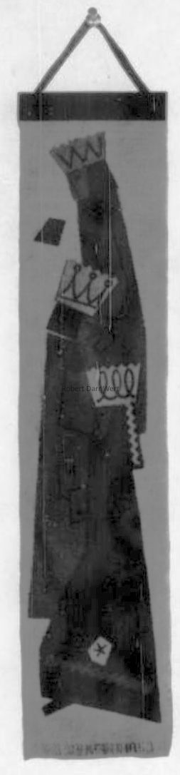 A silkscreen printed wallhanging on linen from Country Prints’ Greeting Hanger line, a series of small wallhangings intended as greeting cards, which came complete with a custom printed envelope and a gift tag for personalization. Imagery depicts the three Kings from the St. Luke story of Jesus’ birth.