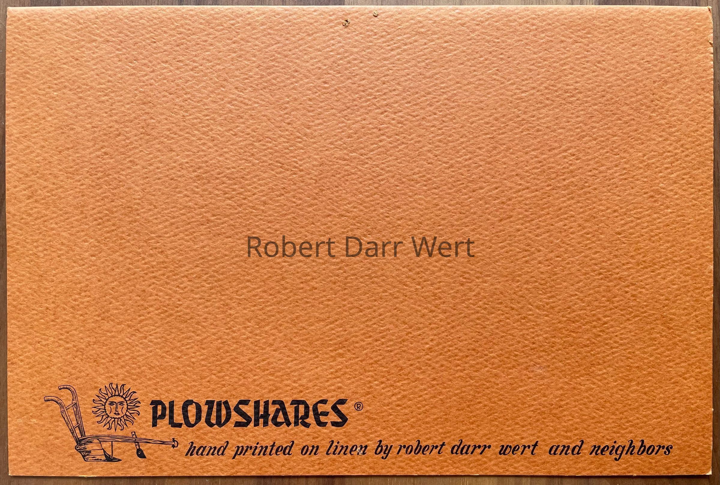 This Christmas Greeting appears in the brochures “Fall and Christmas 1965, Robert Darr Wert/Country Prints”, and “Country Prints by Robert Darr Wert and Neighbors”, c.1966, see images.Made/Created