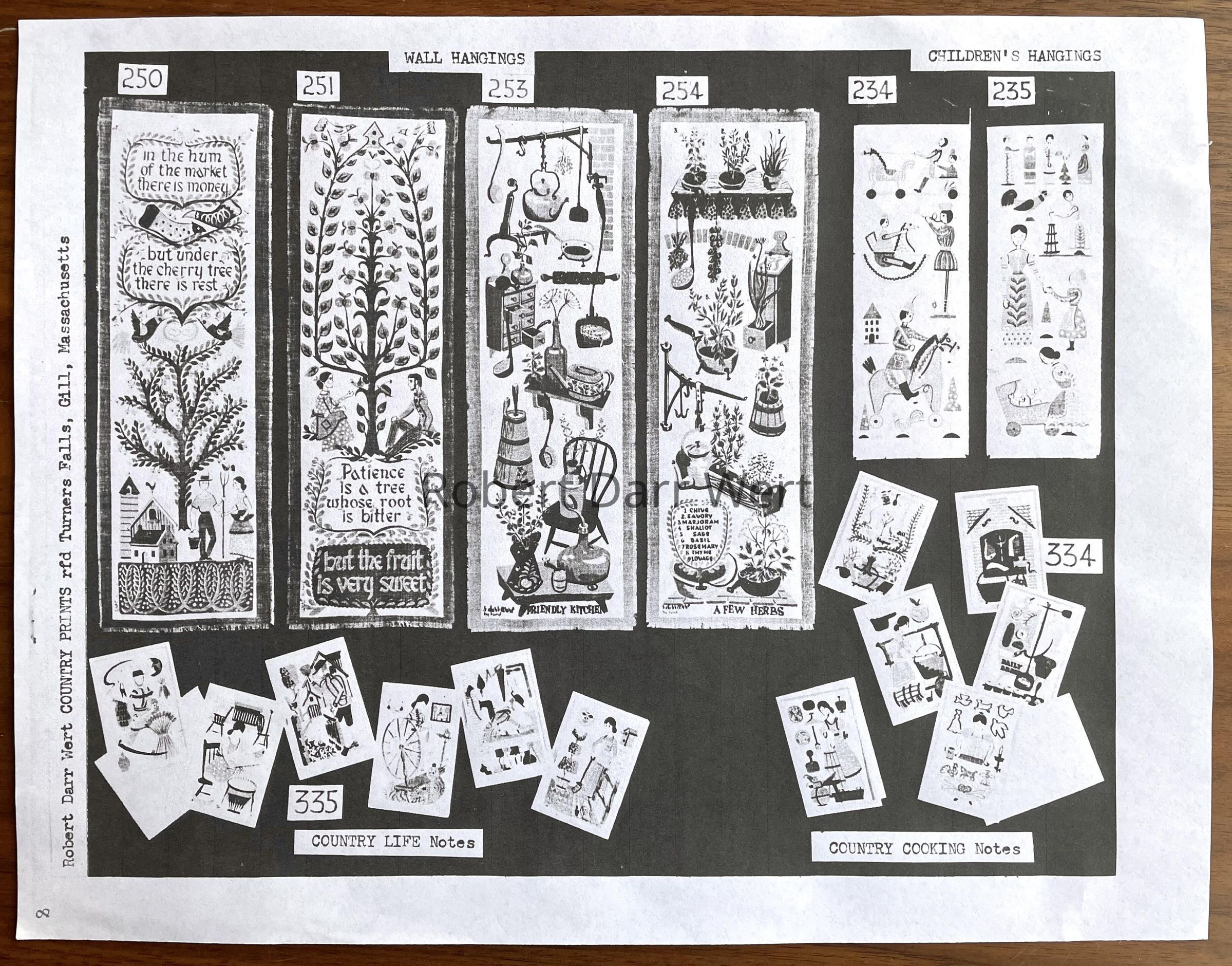 This design is one of a set of six Country Cooking Notes from the Country Print Notes line. It is listed in the Spring 1958 Country Prints price list, and appeared in the c.1960 brochure “Mats Sets by Robert Darr Wert/Country Prints”. It was also produced as a framed print.Made/Created