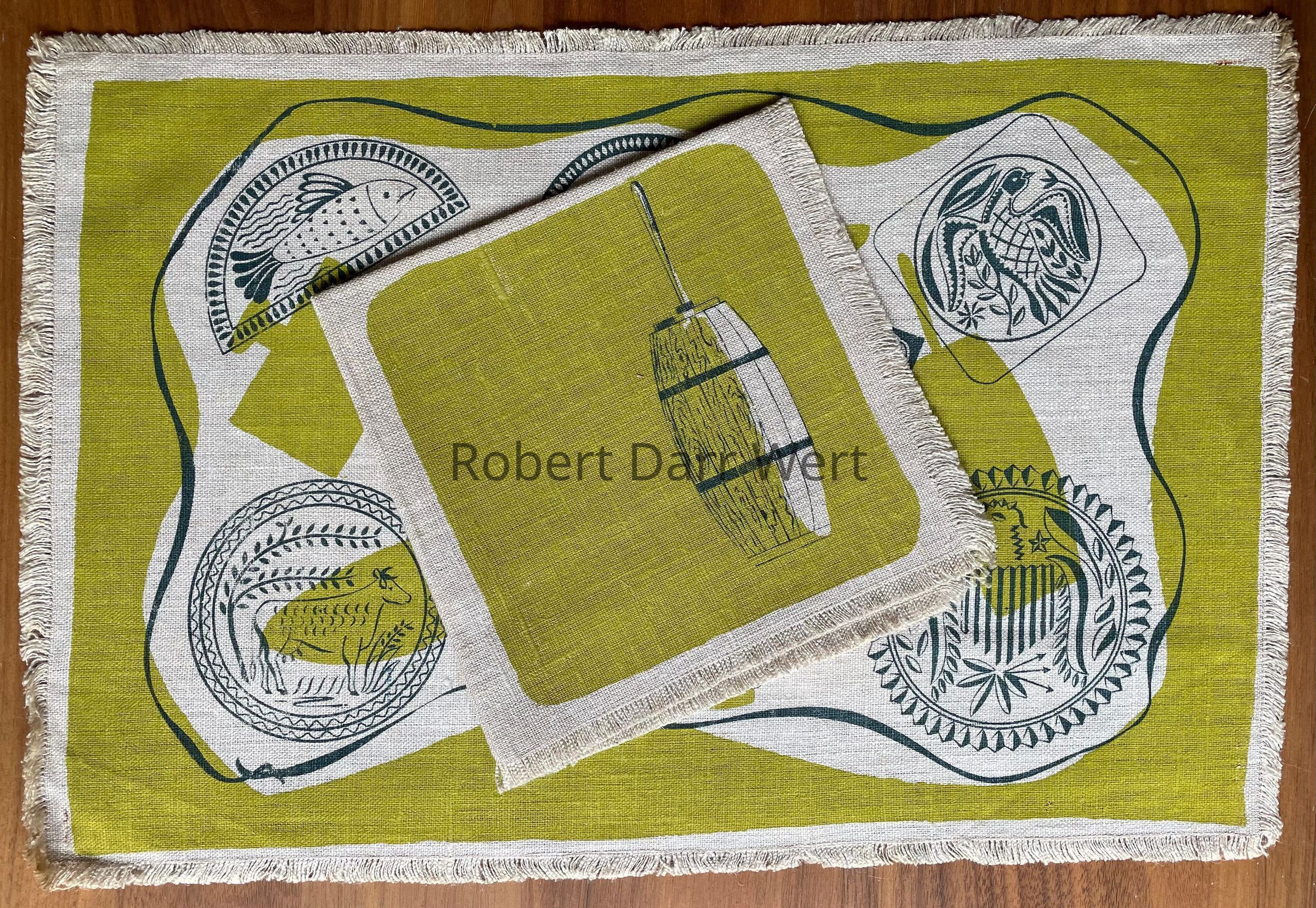 Placemat: Buttermold 117, c.1949, Two-Color, Chartreuse & BlueDescription